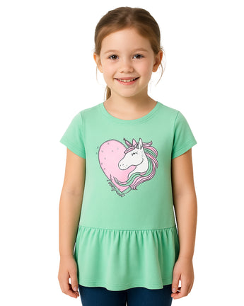 A Glittery Unicorn, Graphic Print, Short Sleeve, Crew Neck