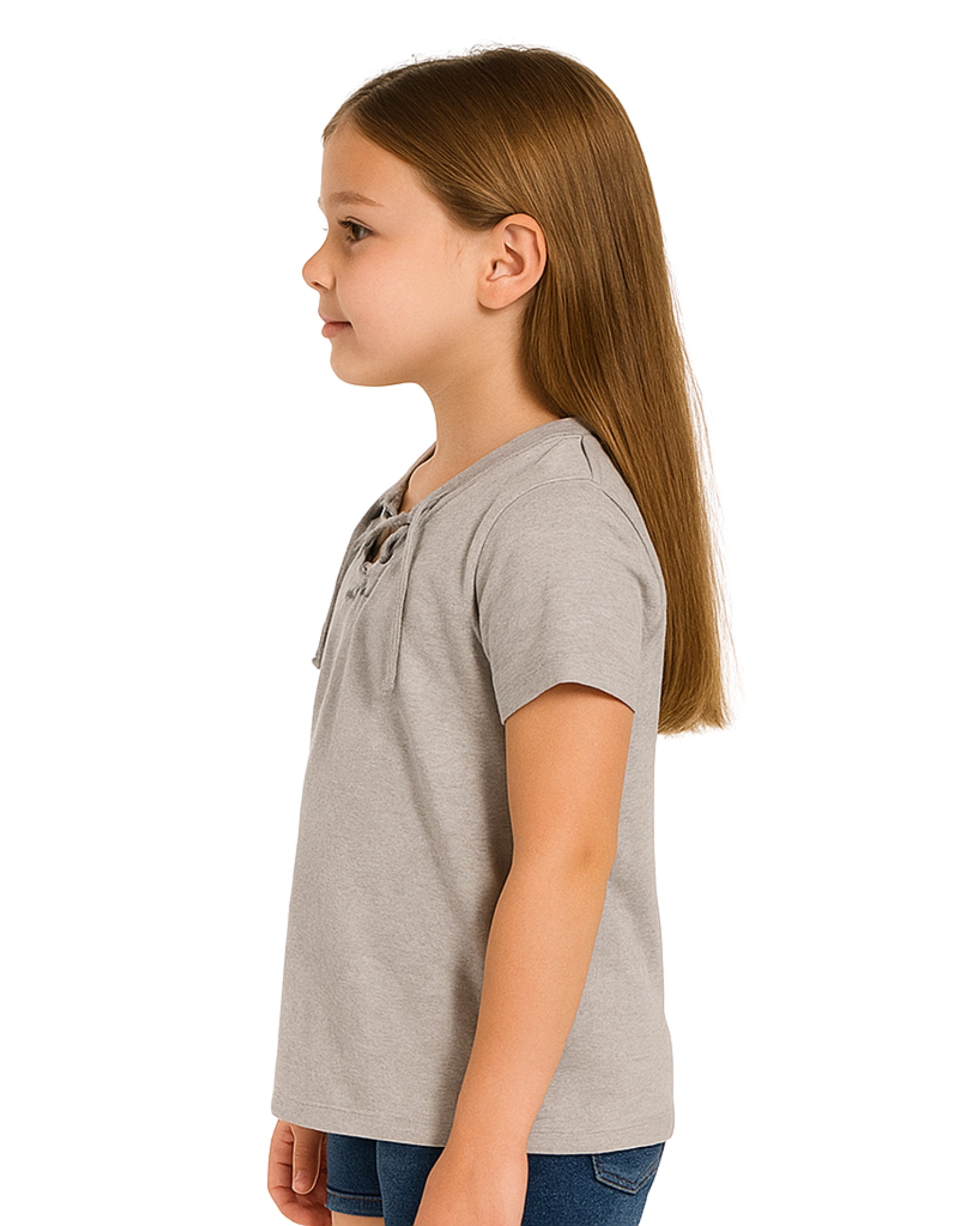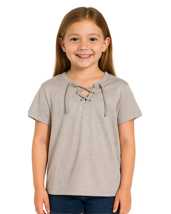 Short Sleeve, Lace Up Details, Round Neck, 100% Polyester
