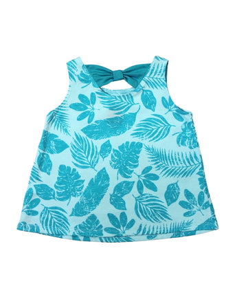 Sleeveless, Open back, Back Bow, All Print, Casual, 60% Cotton, 40% Polyester