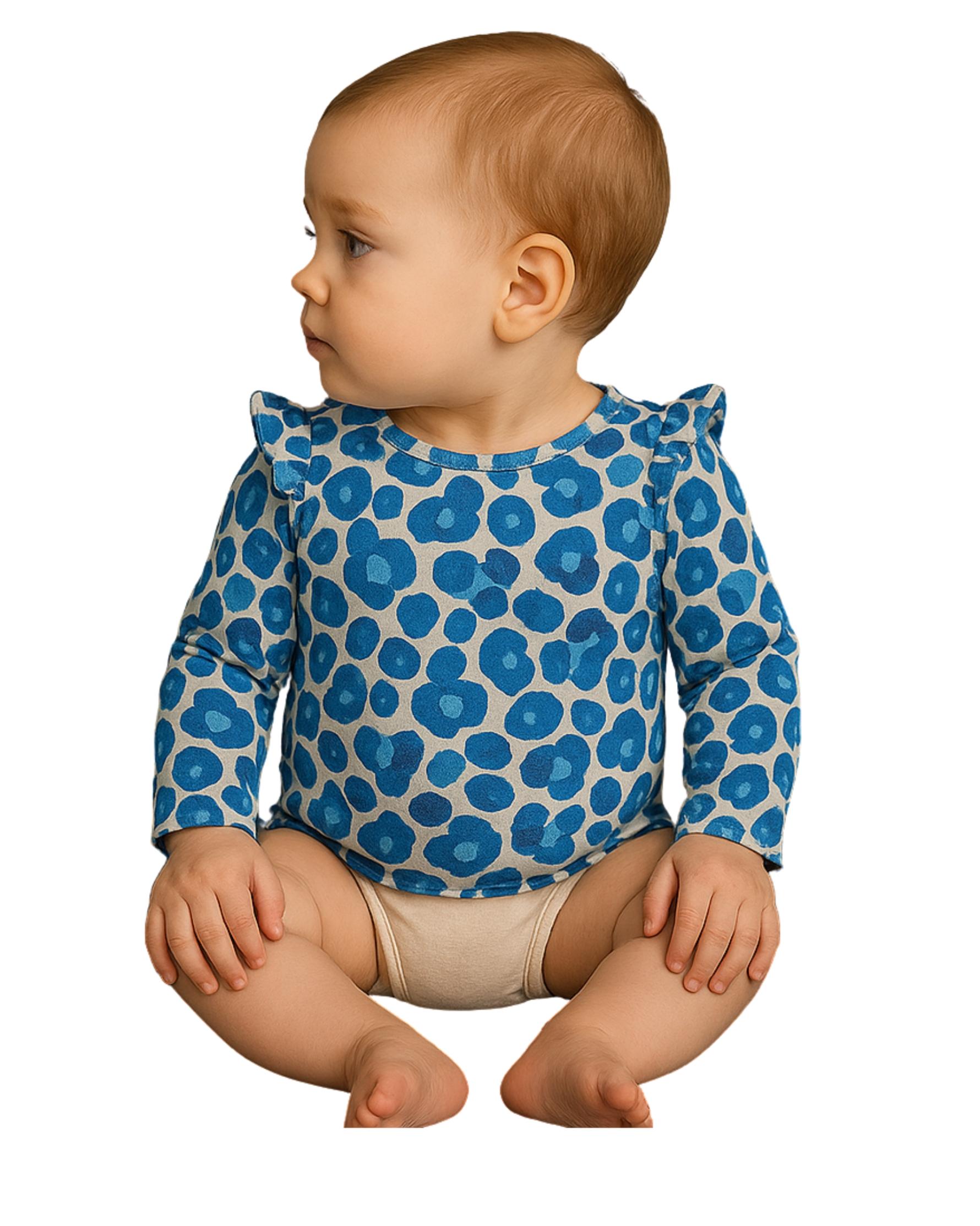 Baby Girls, Long Sleeve, Ruffle, Snap Button, Animal Pattern, Soft, 93% Bamboo, 7% Spandex