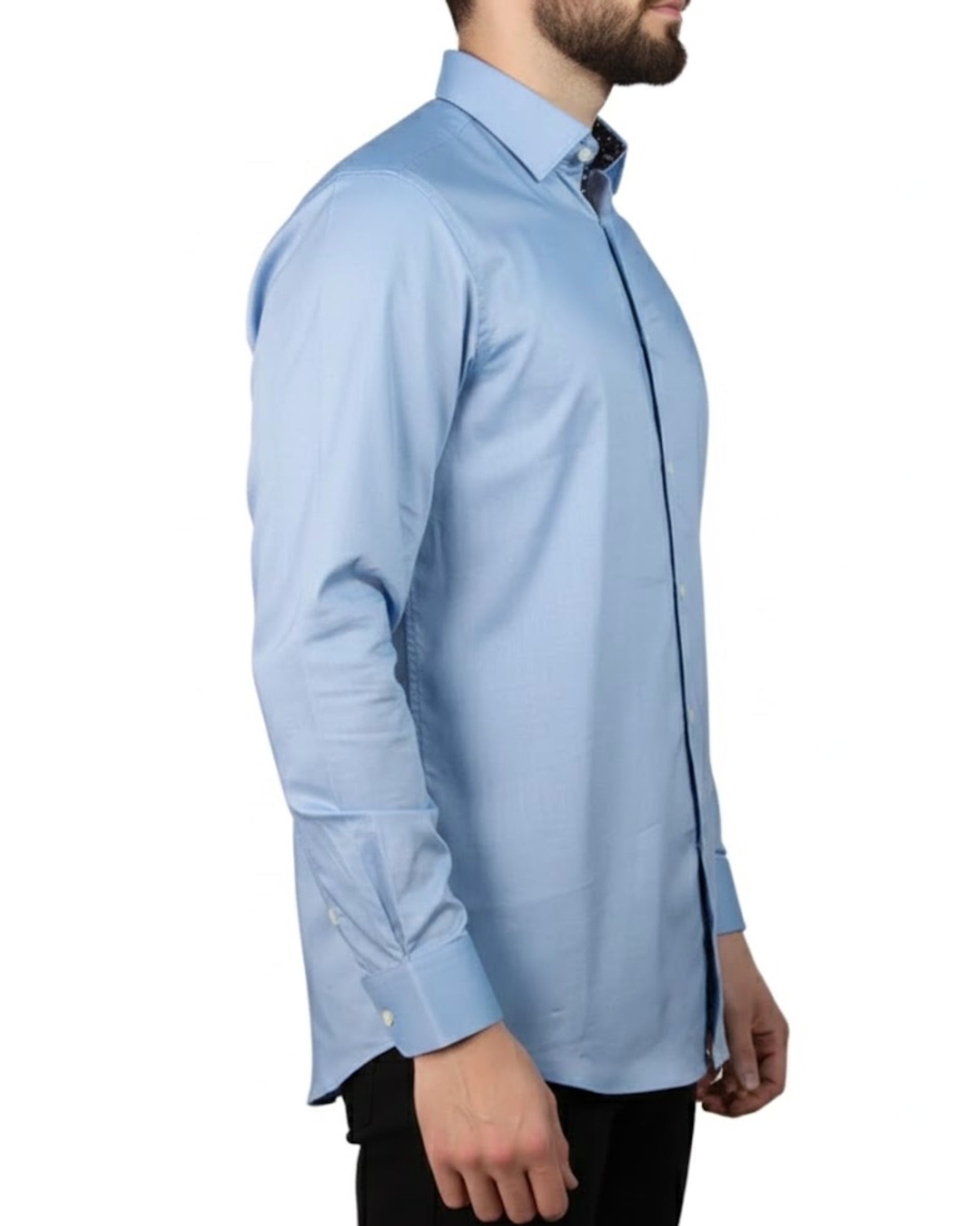 Men, Shirt, Long Sleeve, Polo Neck, Slim Fit, Button, 96% Cotton, 4% Elastane, High Quality