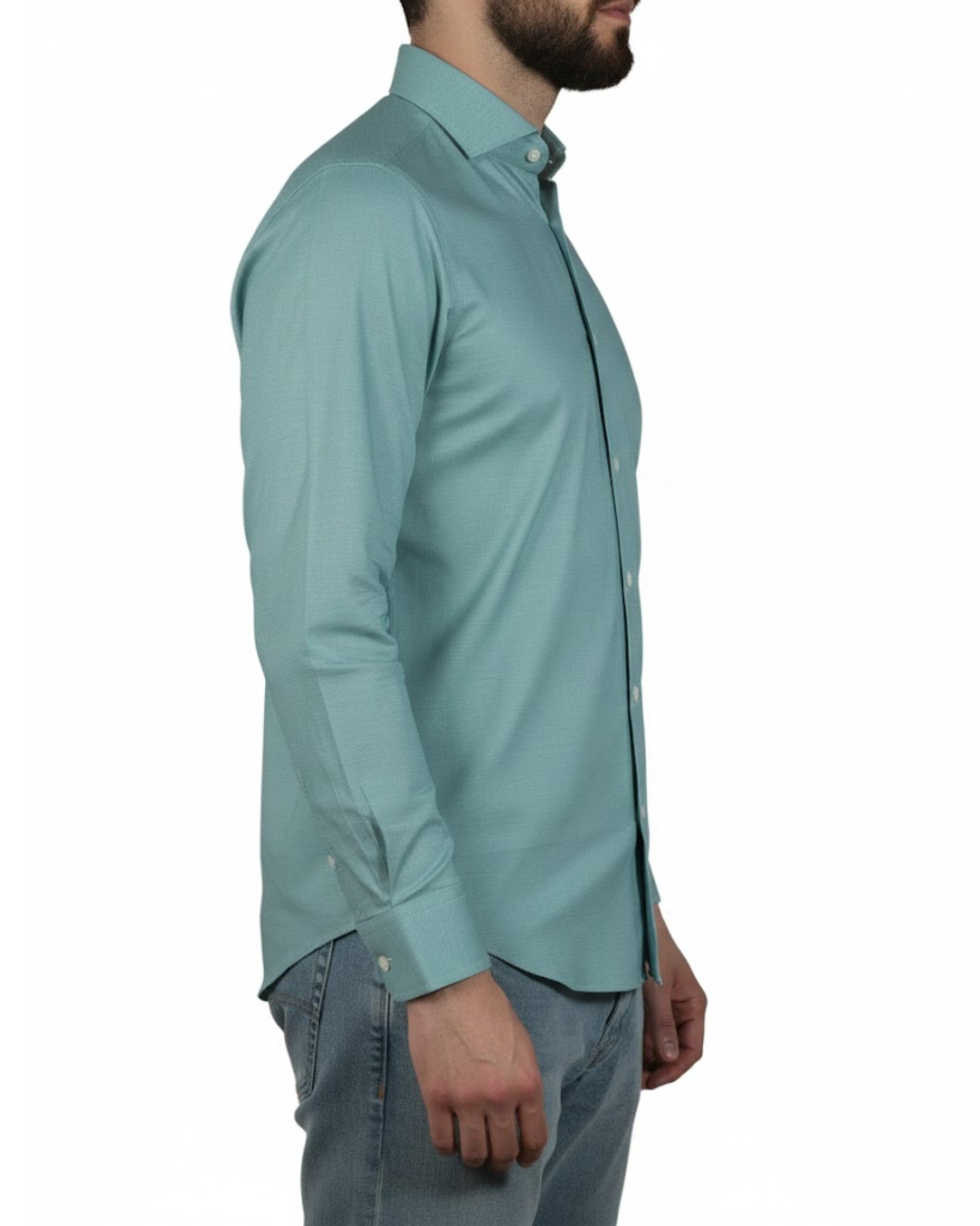 Men, Shirt, Long Sleeve, Polo Neck, Slim Fit, Button, 96% Cotton, 4% Elastane, High Quality