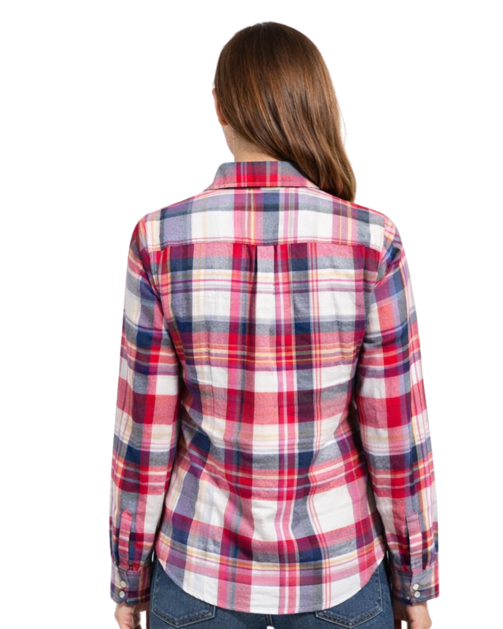 Women, Long Sleeve, Collar Neck, Button Closure, Colorblock, Chest Pocket, Logo On The Pocket, Soft, Regular Fit, Casual, 100% Cotton