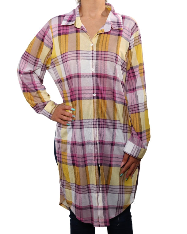 Long Sleeve, Polo Neck, Button Closure, Stripes, Open Sides, Casual, 100% Polyester