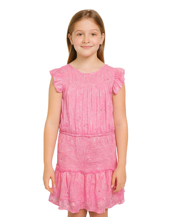 Ruffle Sleeve, Round Neck, Ruffle, Glitter, Back Button Closure, 100% Polyester