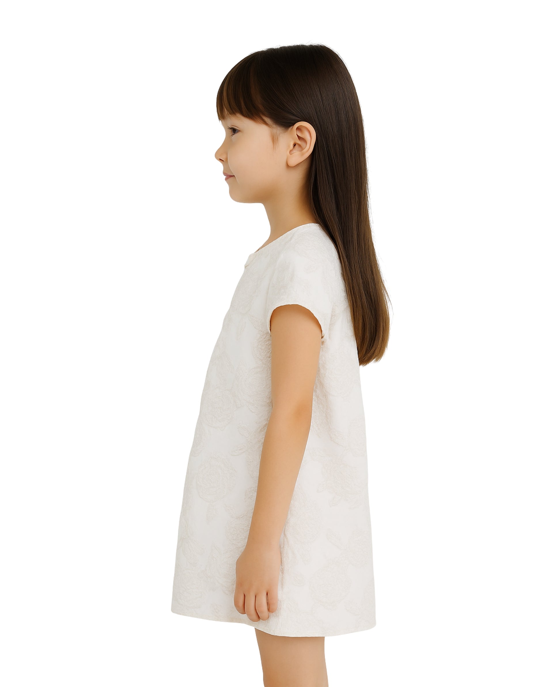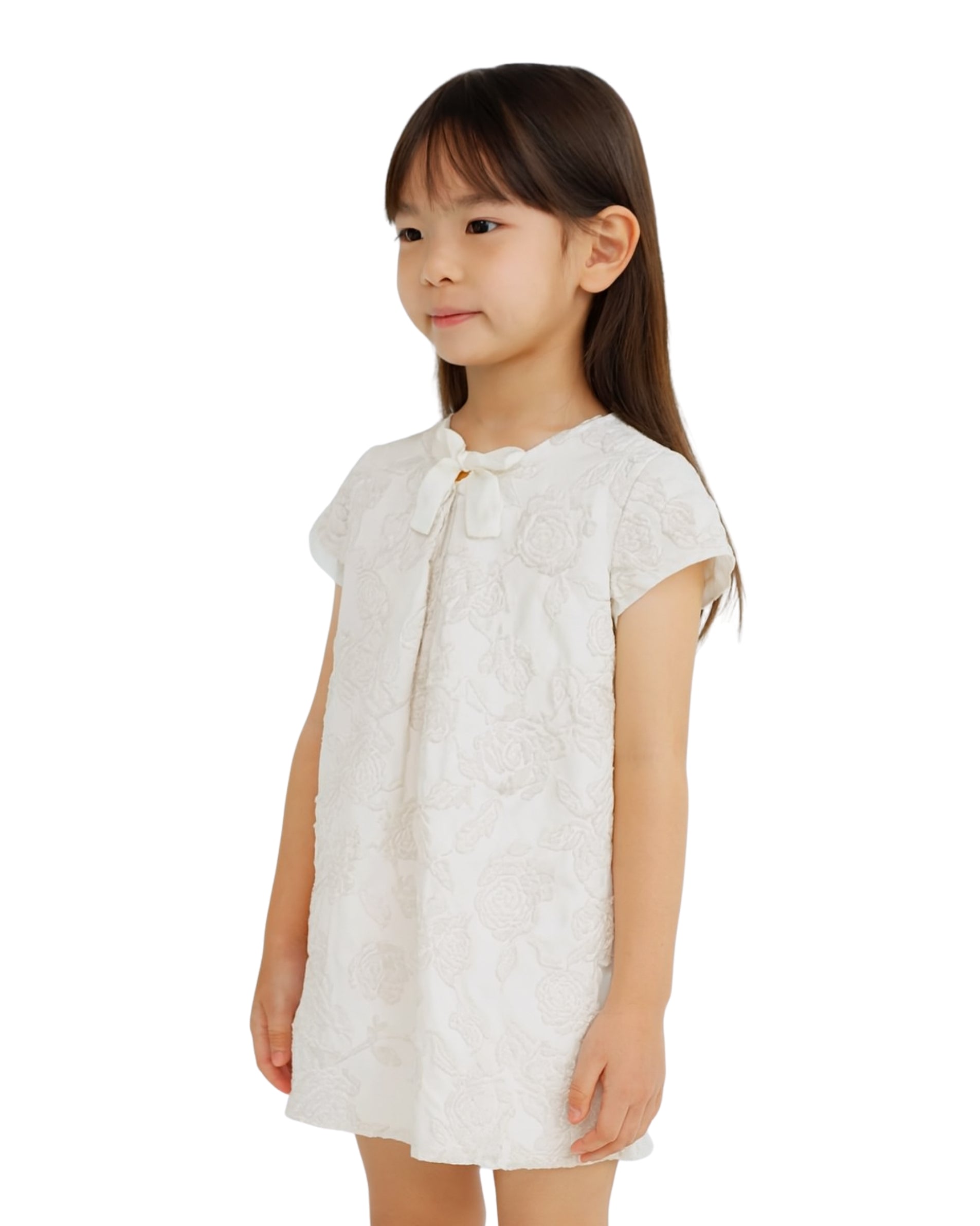 Ruffle Sleeve, Crew Neck, Bow, Floral, Ruffle, Back Zipper Closure, Glitter, 100% Polyester