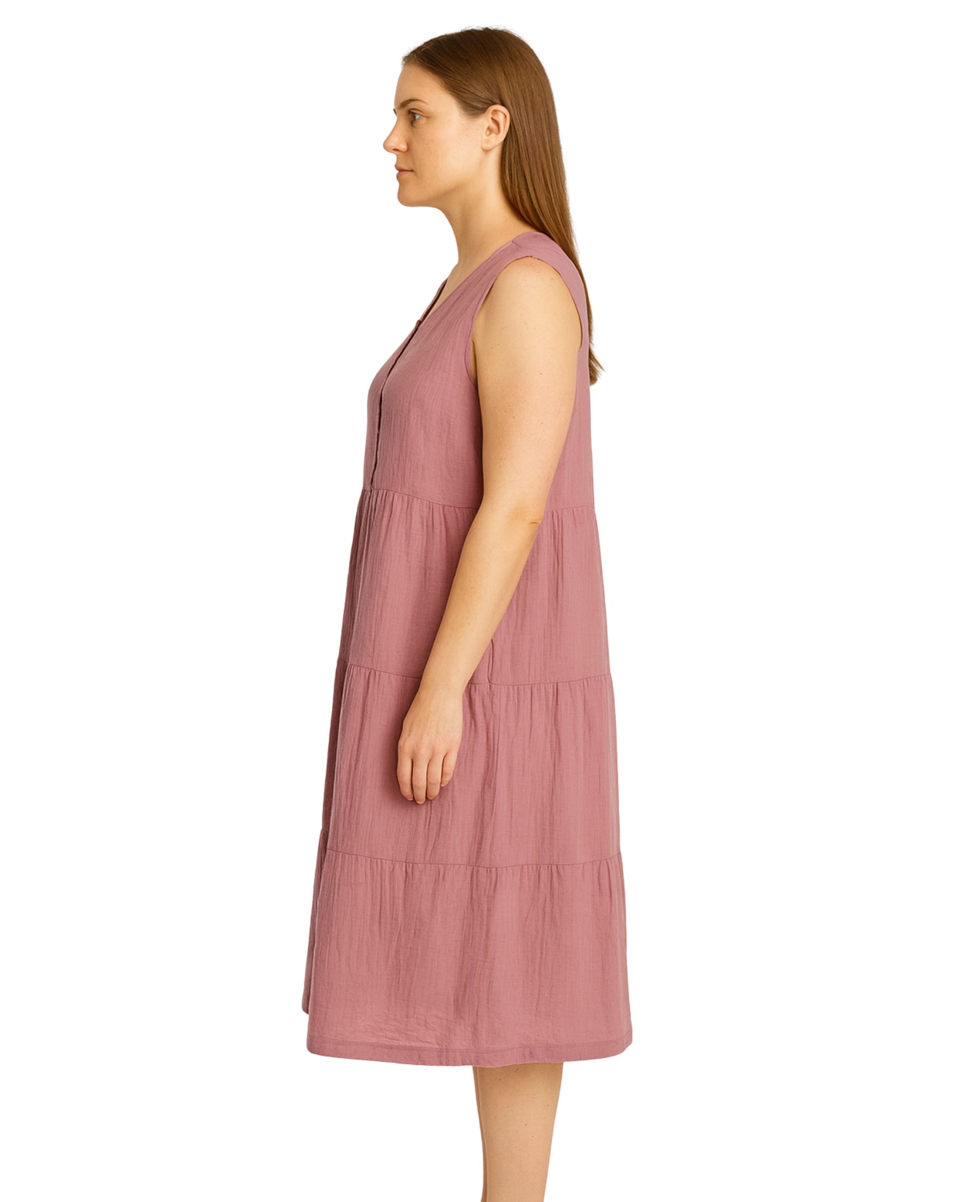 Women, Casual, Soft, Comfortable, Sleeveless, Button Closure, Round Neck