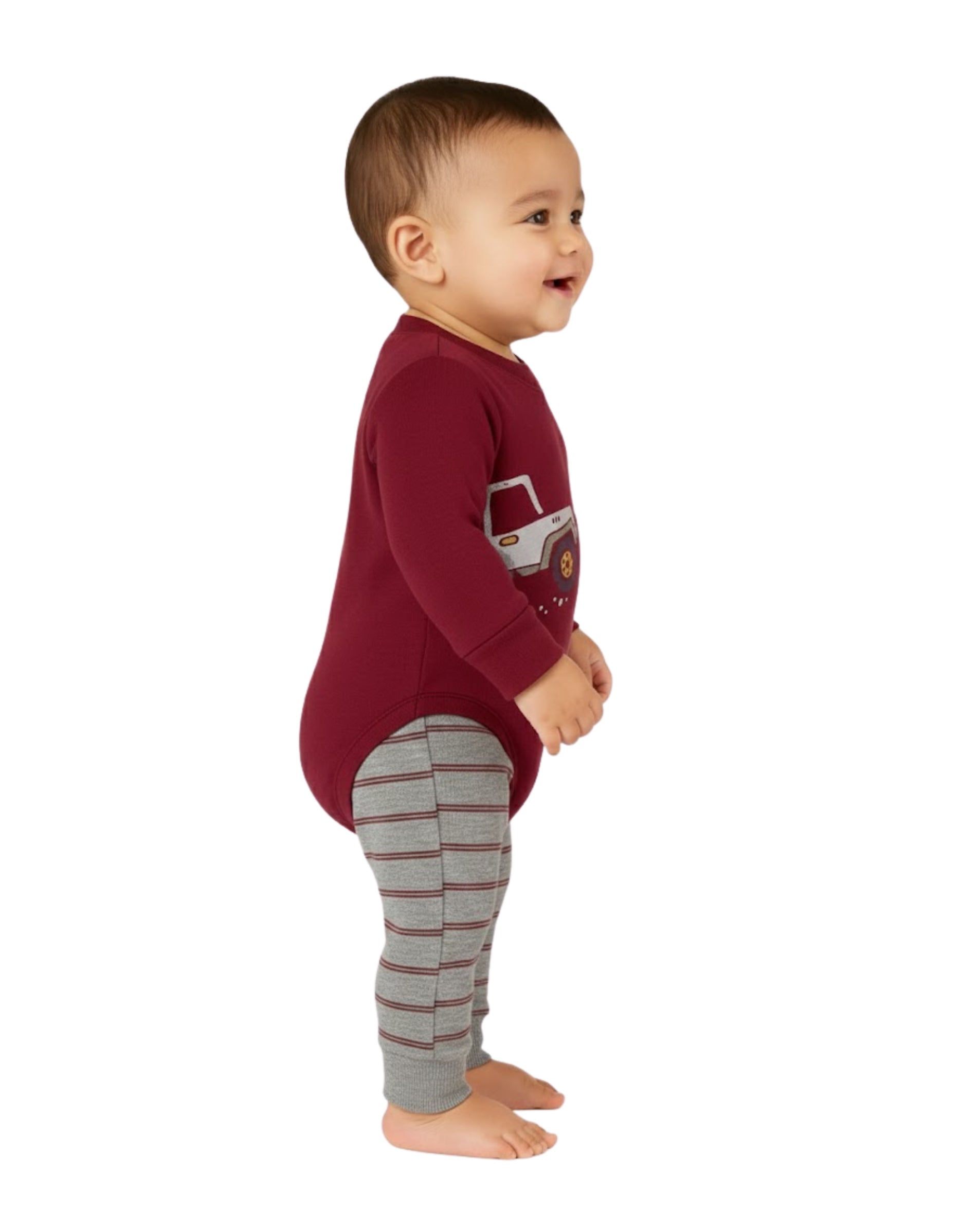 Baby Boys, Long Sleeve Jumpsuit, Front Artwork, Snap Button, Comes With Stretch & Stripe Pant, Drawstring, Comfort, 100% Cotton