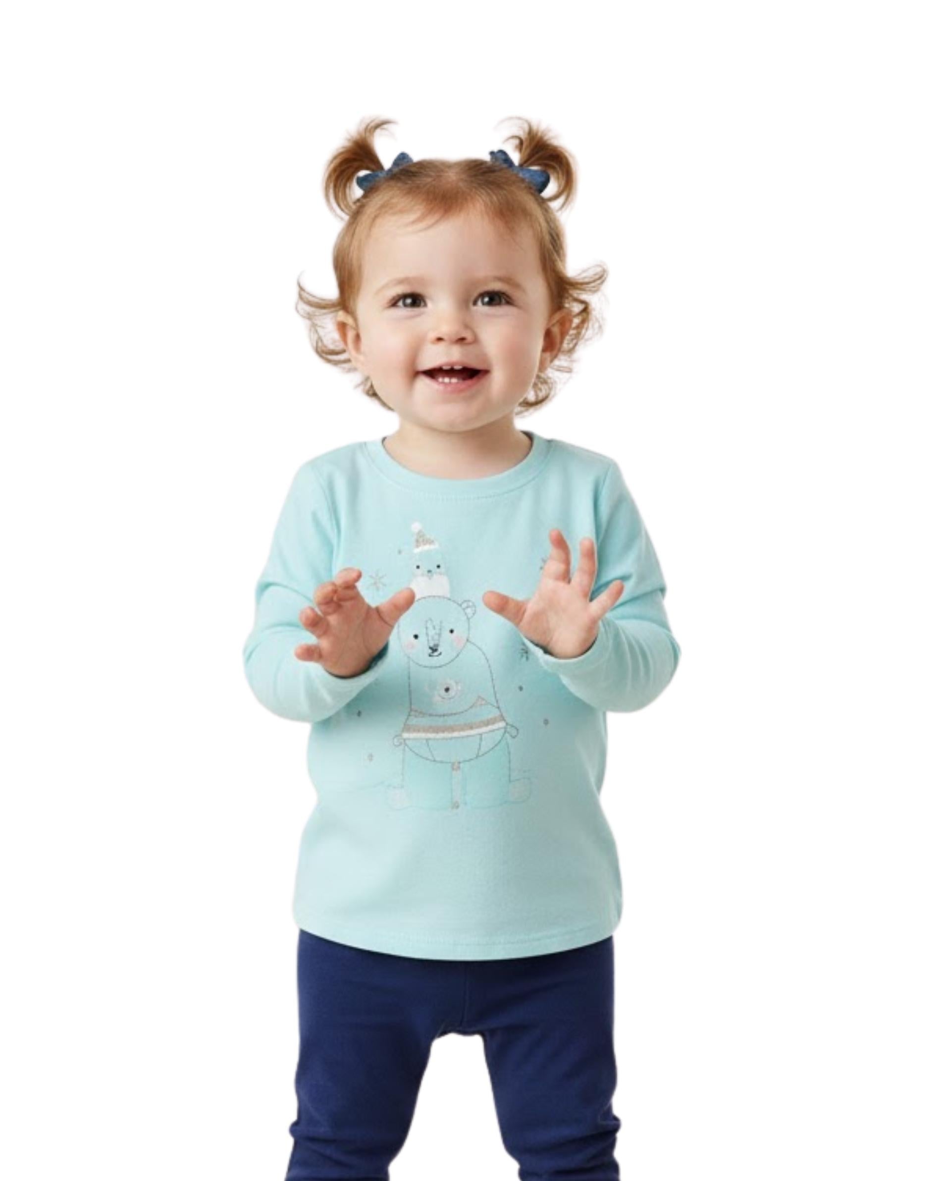 Baby, Girls, Casual, Long Sleeve, Soft, Smooth, Graphics, Round Neck, 60% Cotton, 40% Polyeste