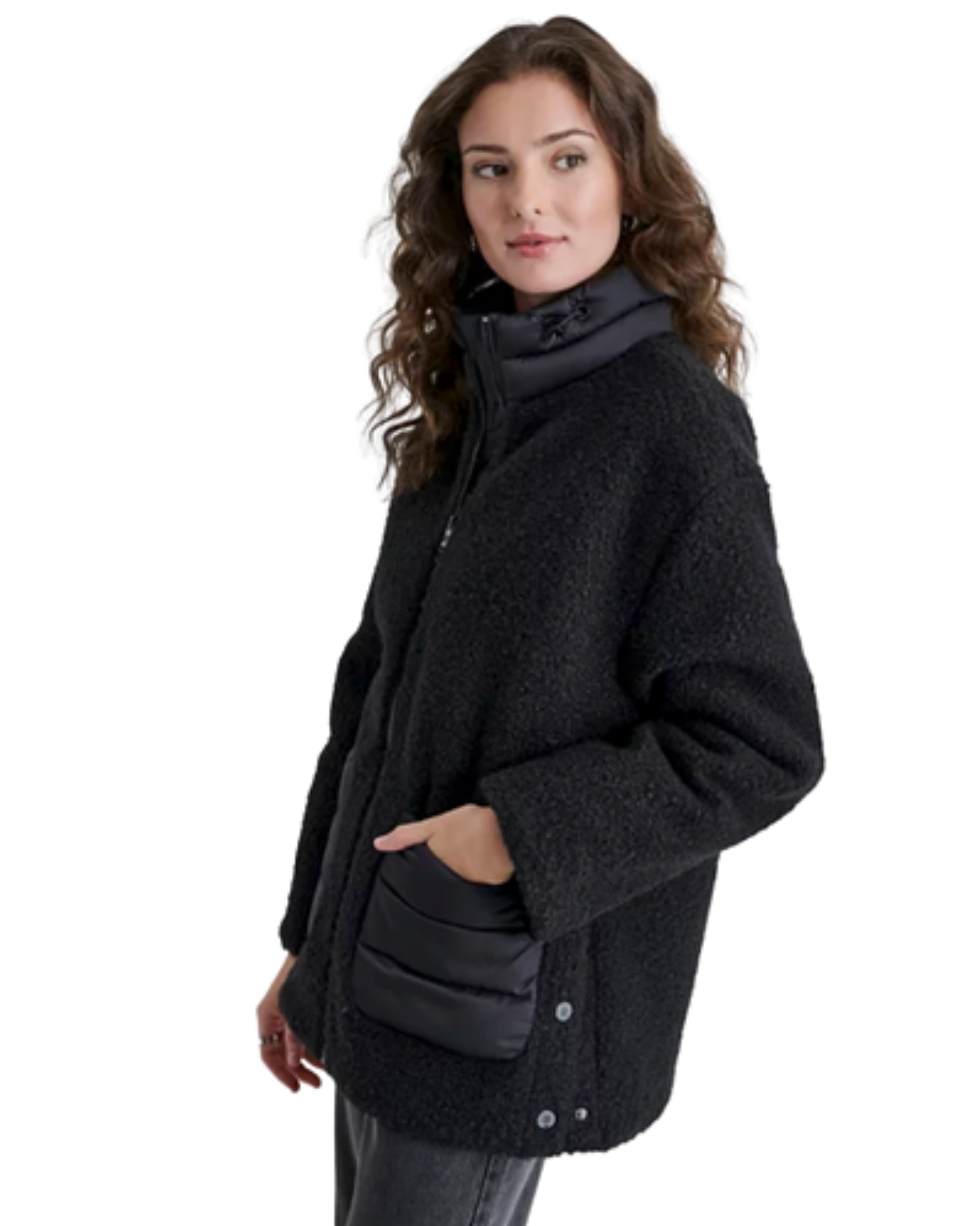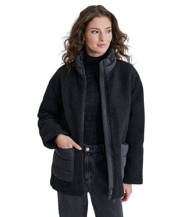 Women, Long Sleeve, High Neck, Full Zipper Closure, Side Snap Button, 2 Pockets, Faux Shearling, Warm, Stylish & Causal, 100% Polyester
