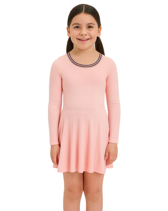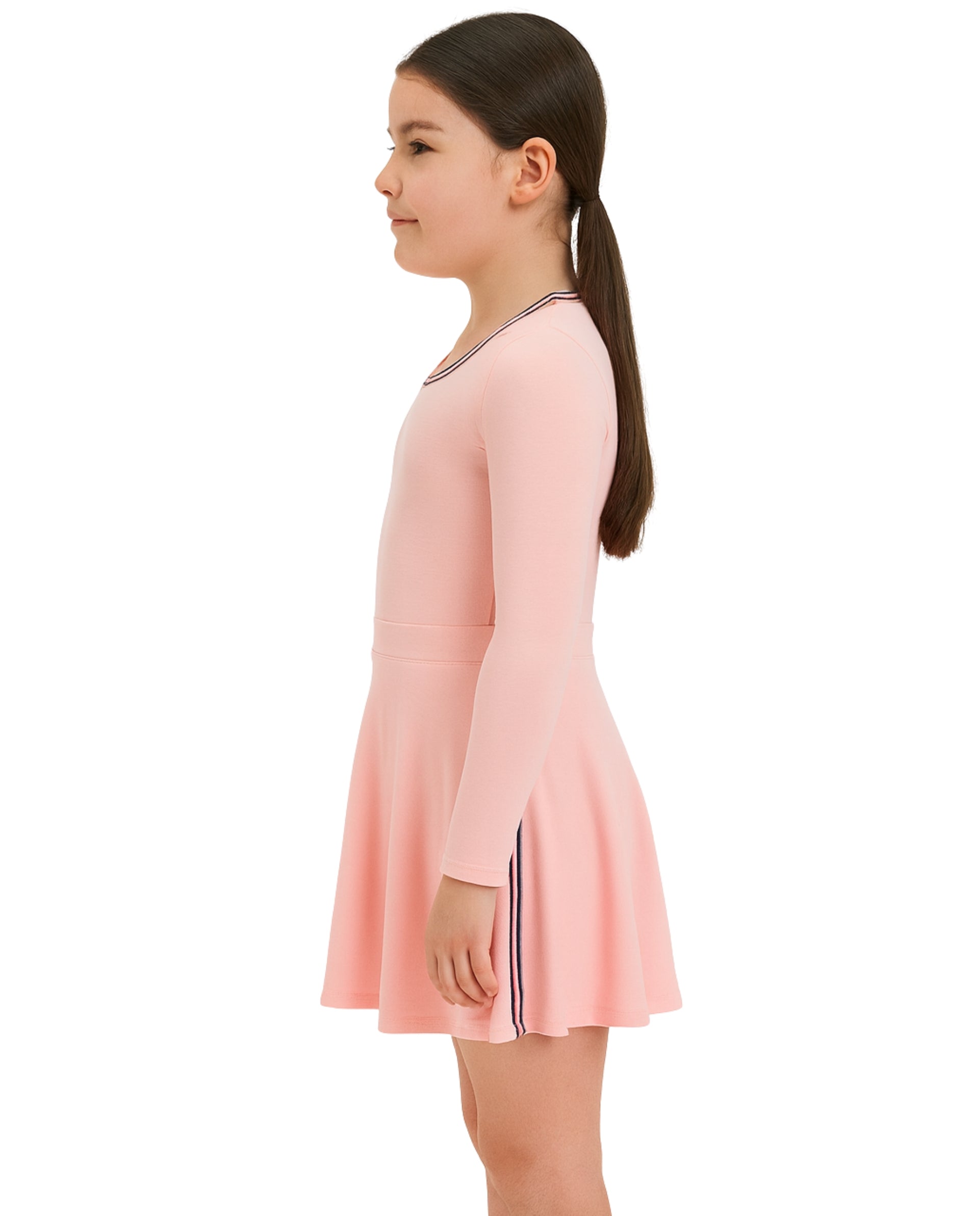 Girls, Long Sleeve, Round Neck, Pull Over Skirt, Stretch, Lined, Soft, Casual Set, 90% Polyester, 10% Spandex
