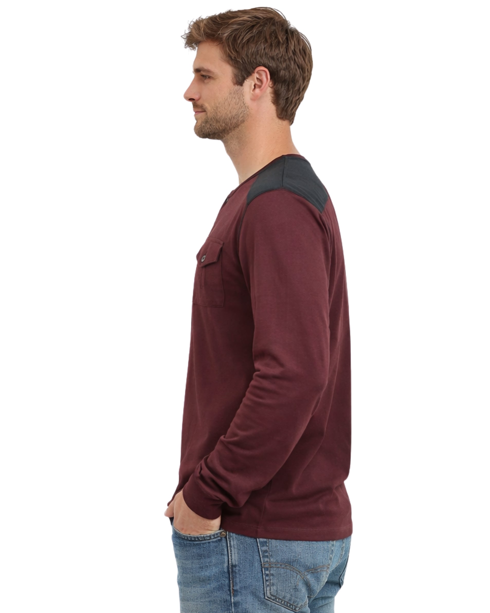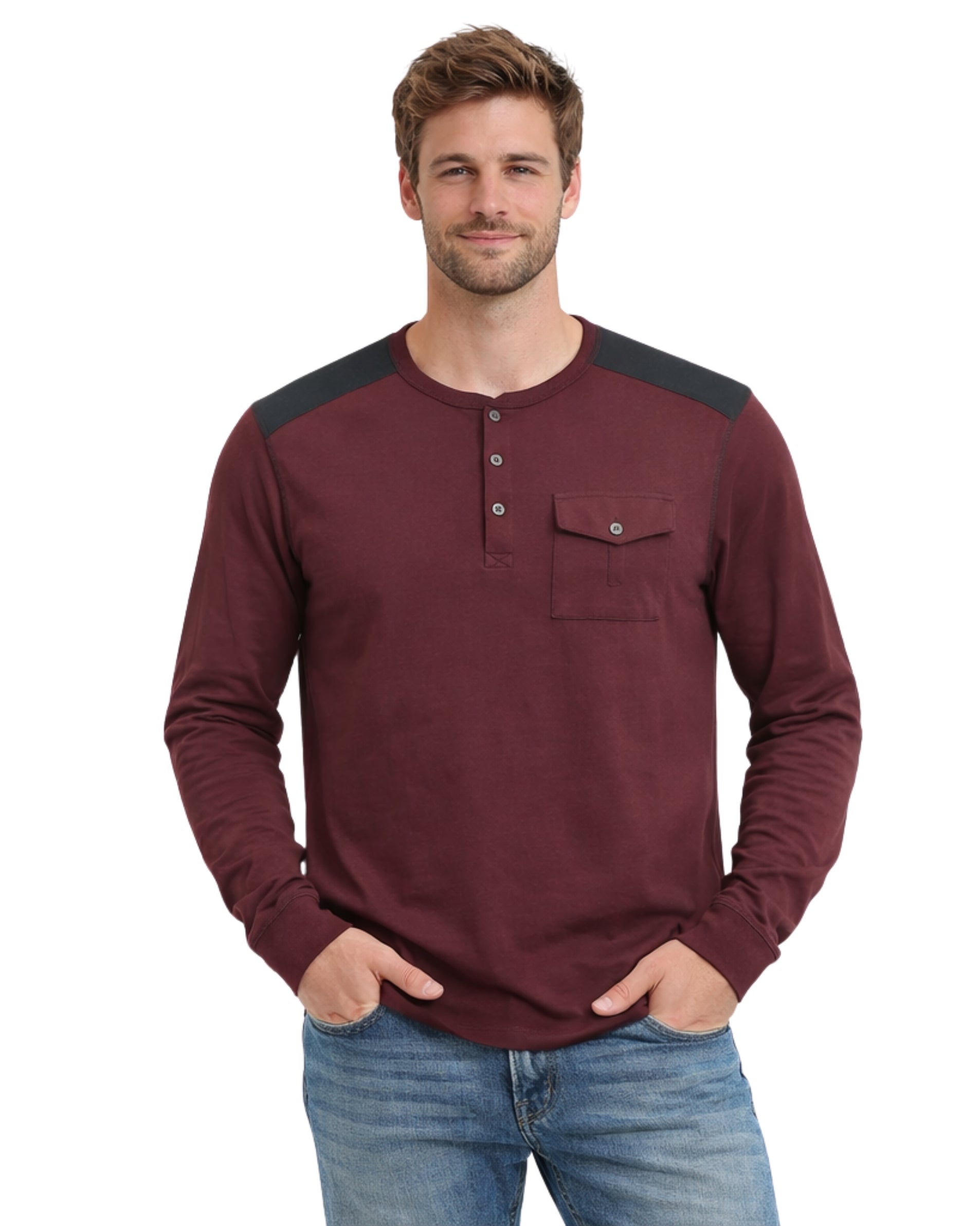 Men, Long Sleeve, Crew Neck With Button Closure, Chest Pocket