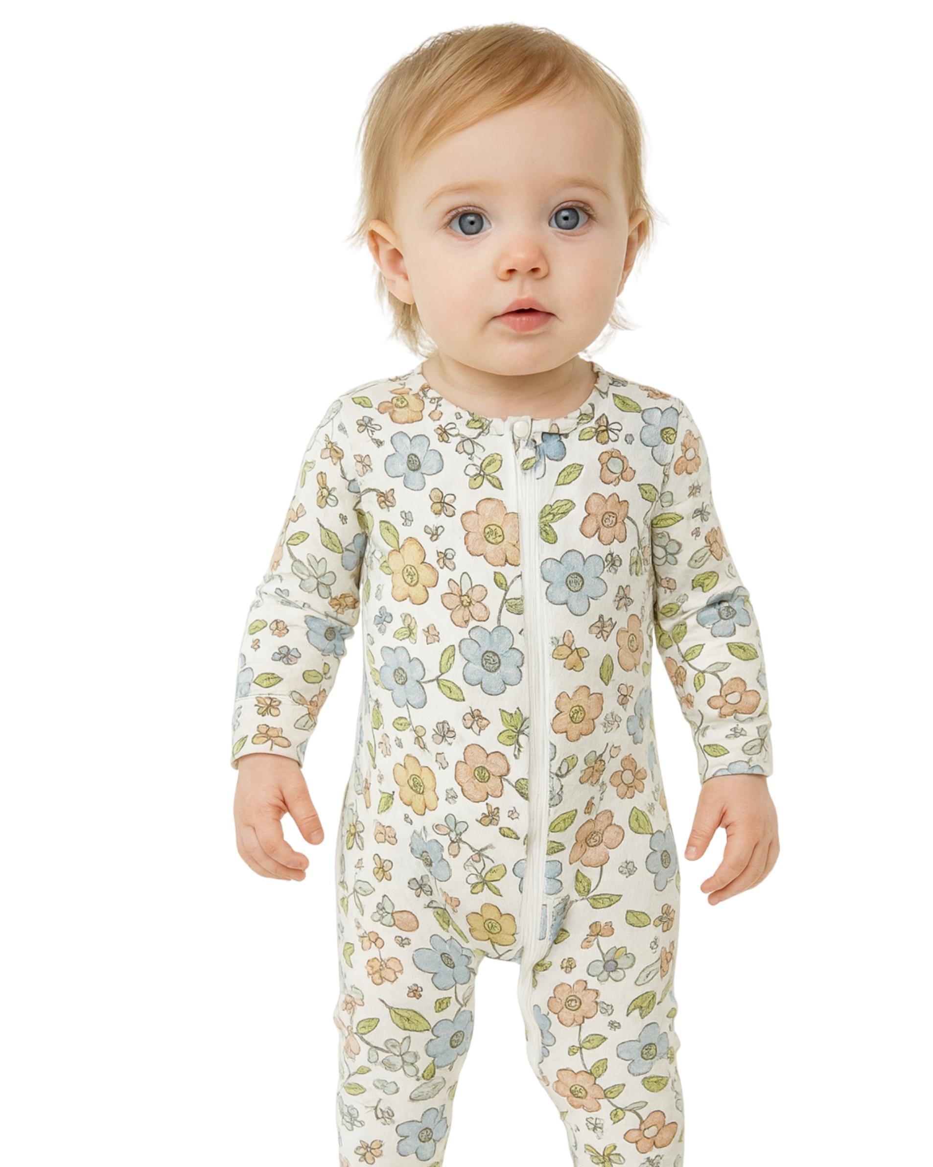 Baby, Girls, Casual, Floral Print, Long Sleeve, Comfort, Soft, Smooth, Easy To Wear, Zipper Closure From Leg Till Neck, 93% Rayom