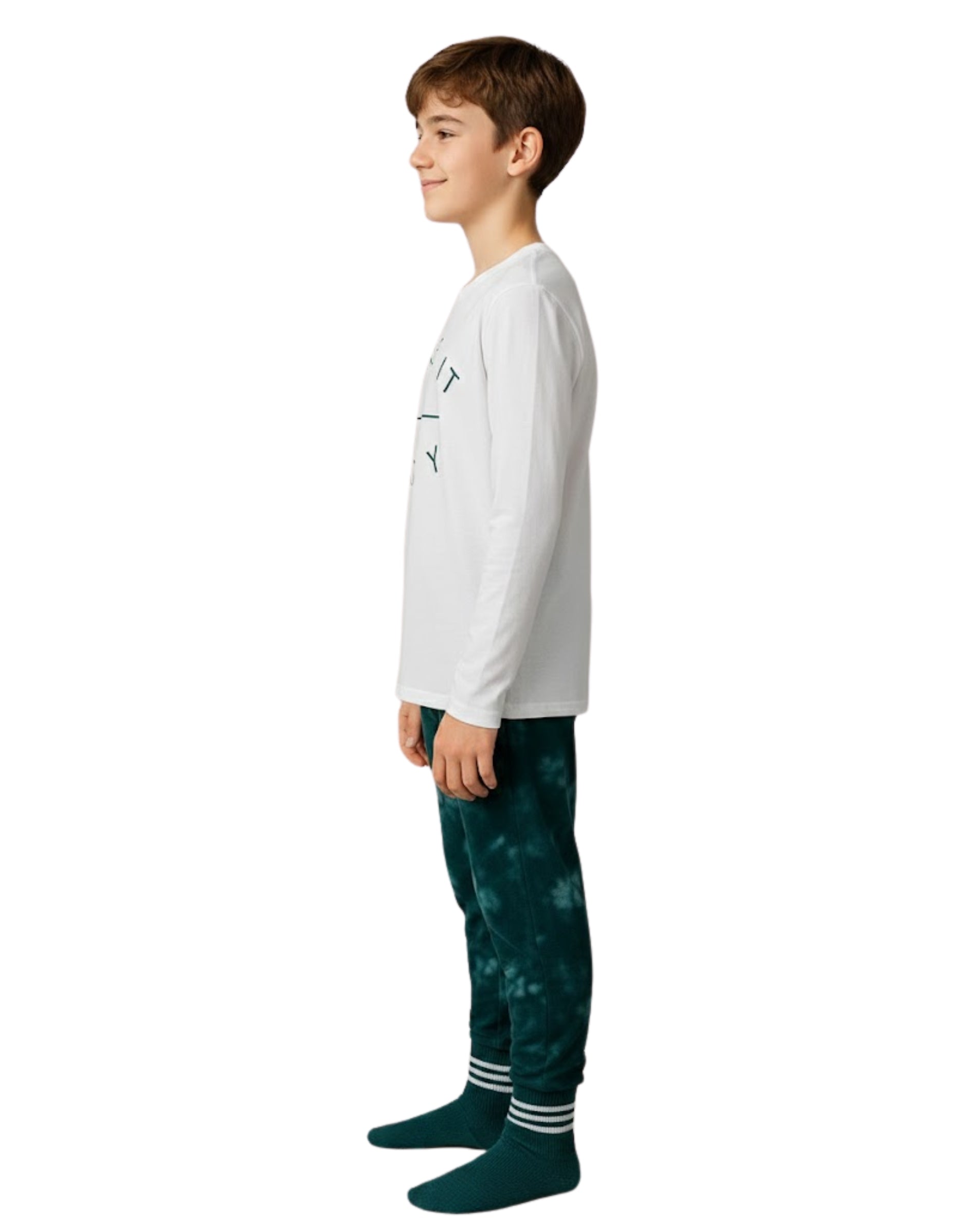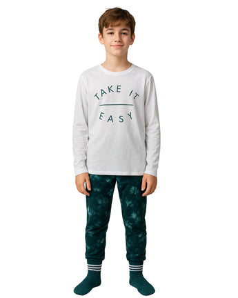 Boys, Long Sleeve, Front Take It Easy Pattern, Graphic Pant, Soft, Comes With Socks, 100% Polyester