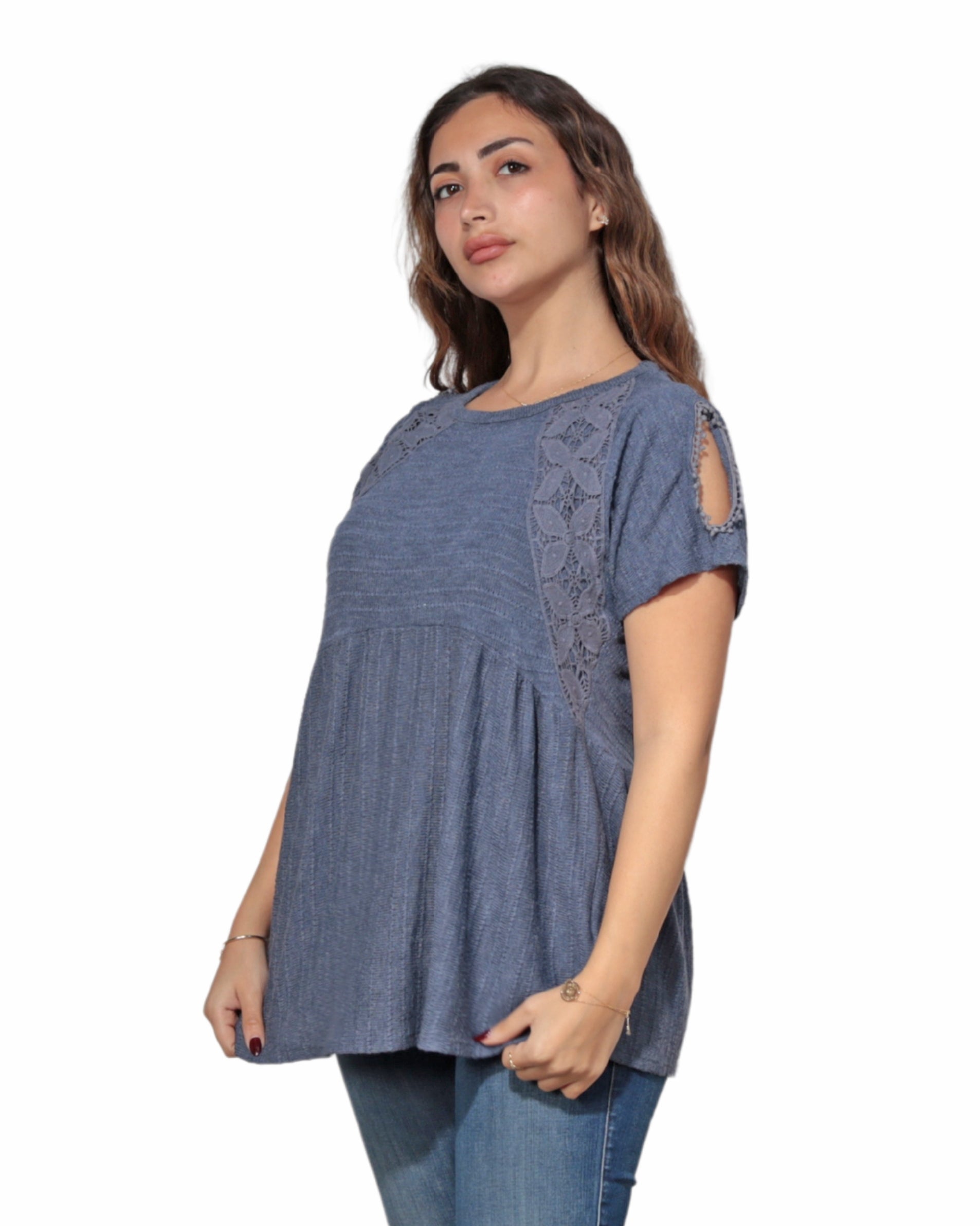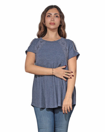 Women, Short Sleeve, Round Neck, Embroided, Casual, 63% Polyester, 33% Rayon, 4% Spandex