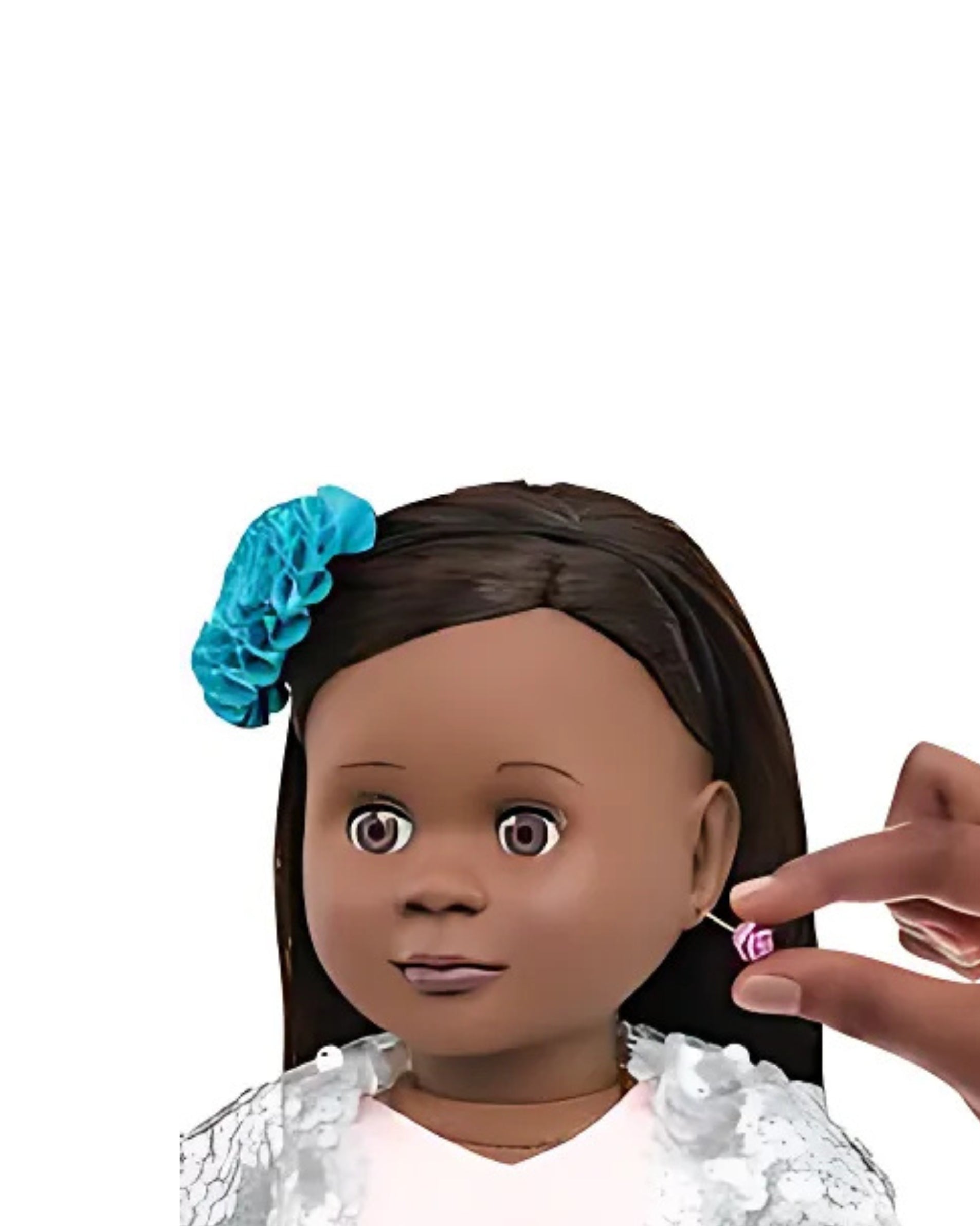 Maeva has a Soft Body that's Just the Right Size for Cuddling and Hugging, Her Eyes Open and Close as Well, She Comes With Several Pieces of Jewelry Plus a Stand for Safekeeping and Display
