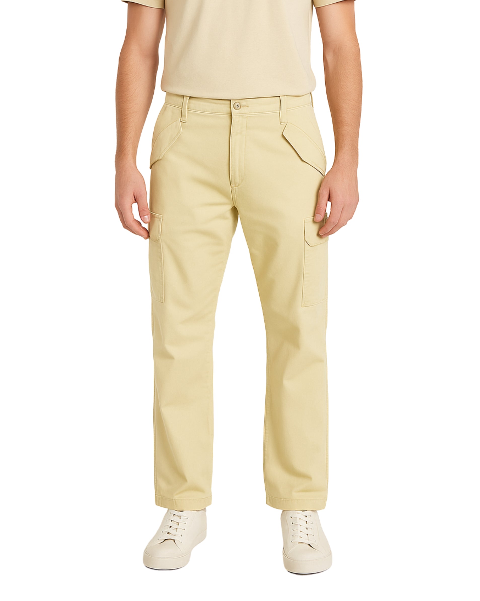 Men, Button With Zipper Closure, Side & Thighs Flap Pockets, 2 Back Pockets, Straight, Soft, Casual Cargo & Stylish, 97% cotton, 3% Elastane