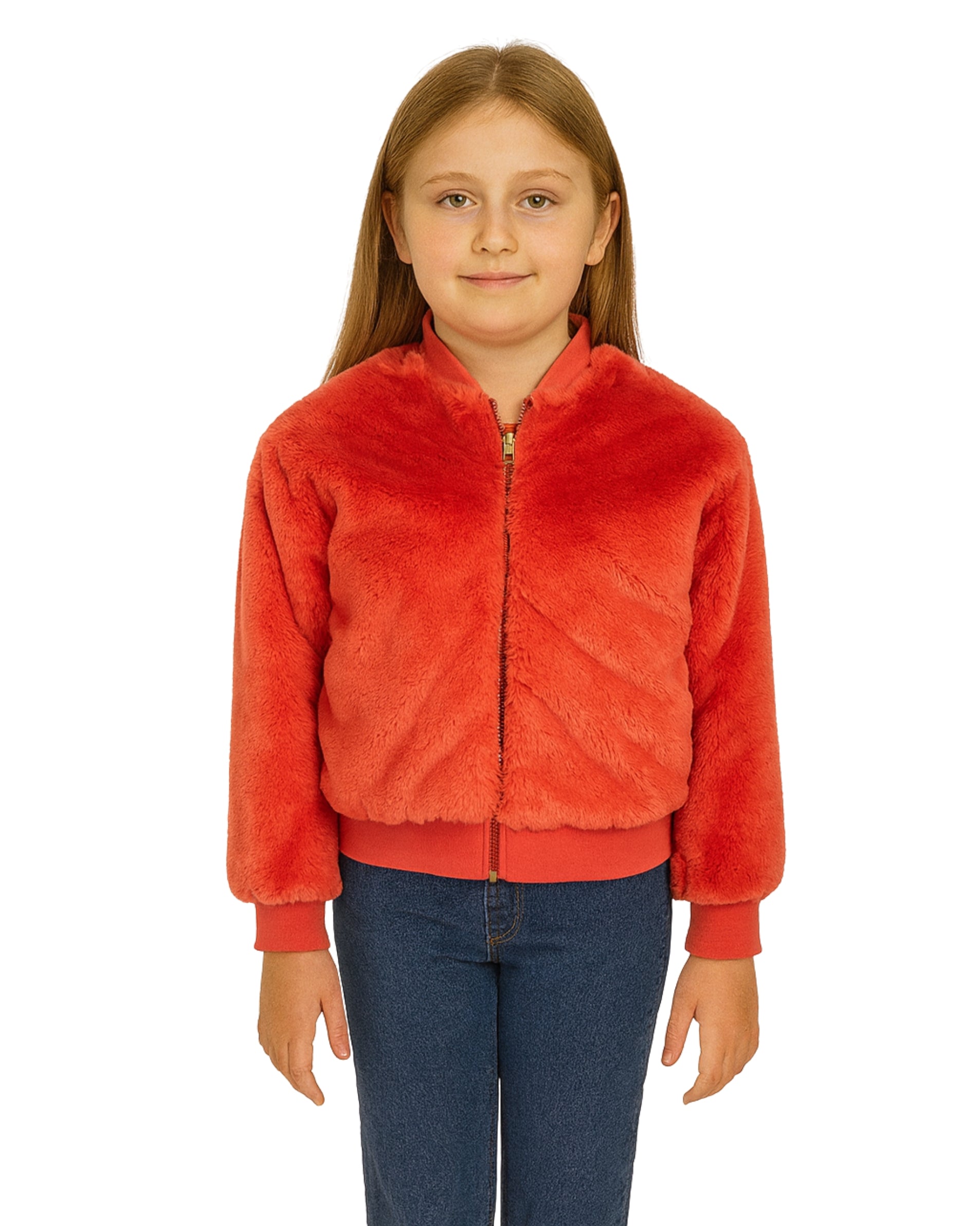 Girls, Long Sleeve, Crew Neck, Zipper Closure, 2 Pockets, Faux Fur, Bomber Jacket, Warmth