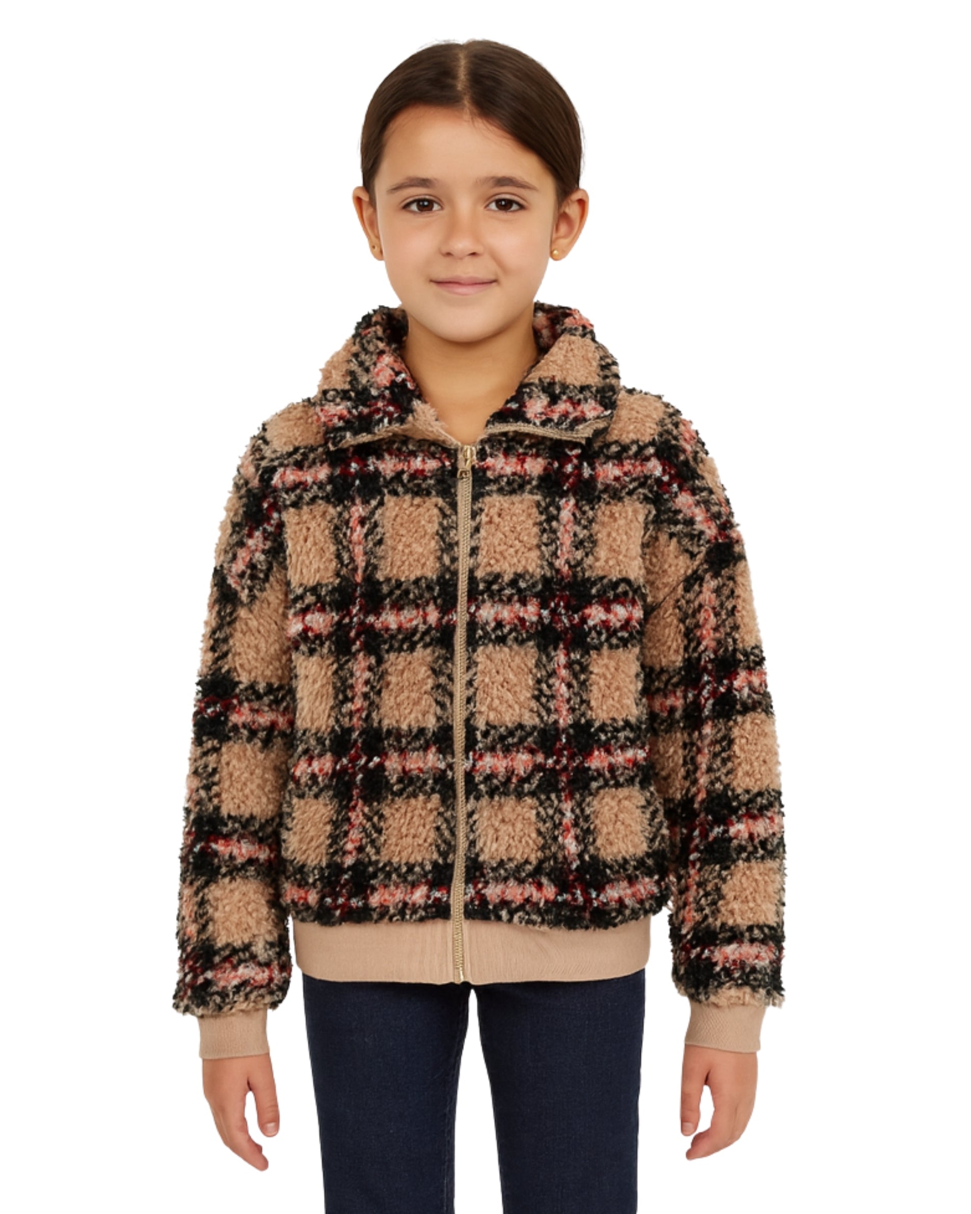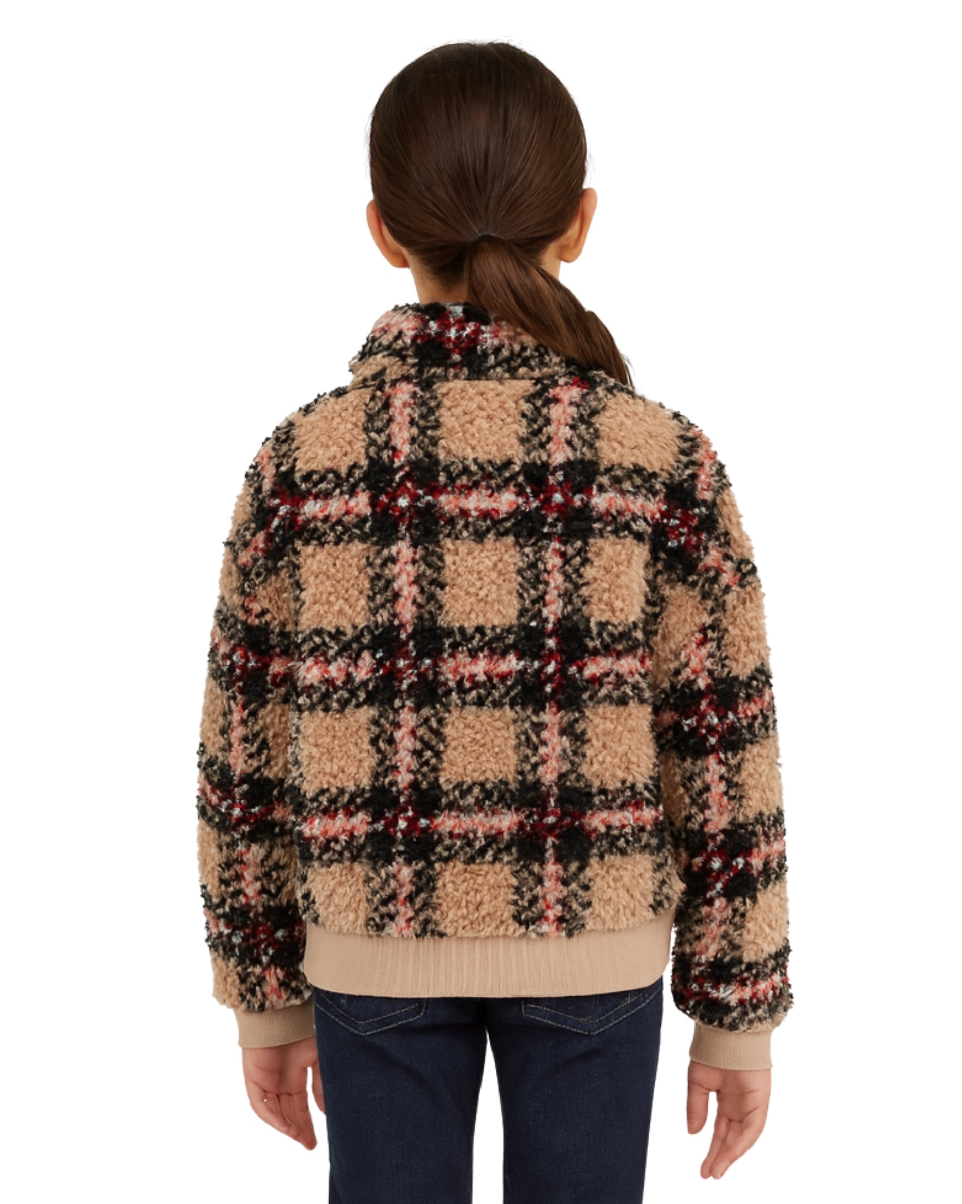 Girls, Long Sleeve, Polo Neck, Zipper Closure, Faux Wool, Colorblock, Stylish, 67% Polyester, 33% Acrylic, 60% Cotton