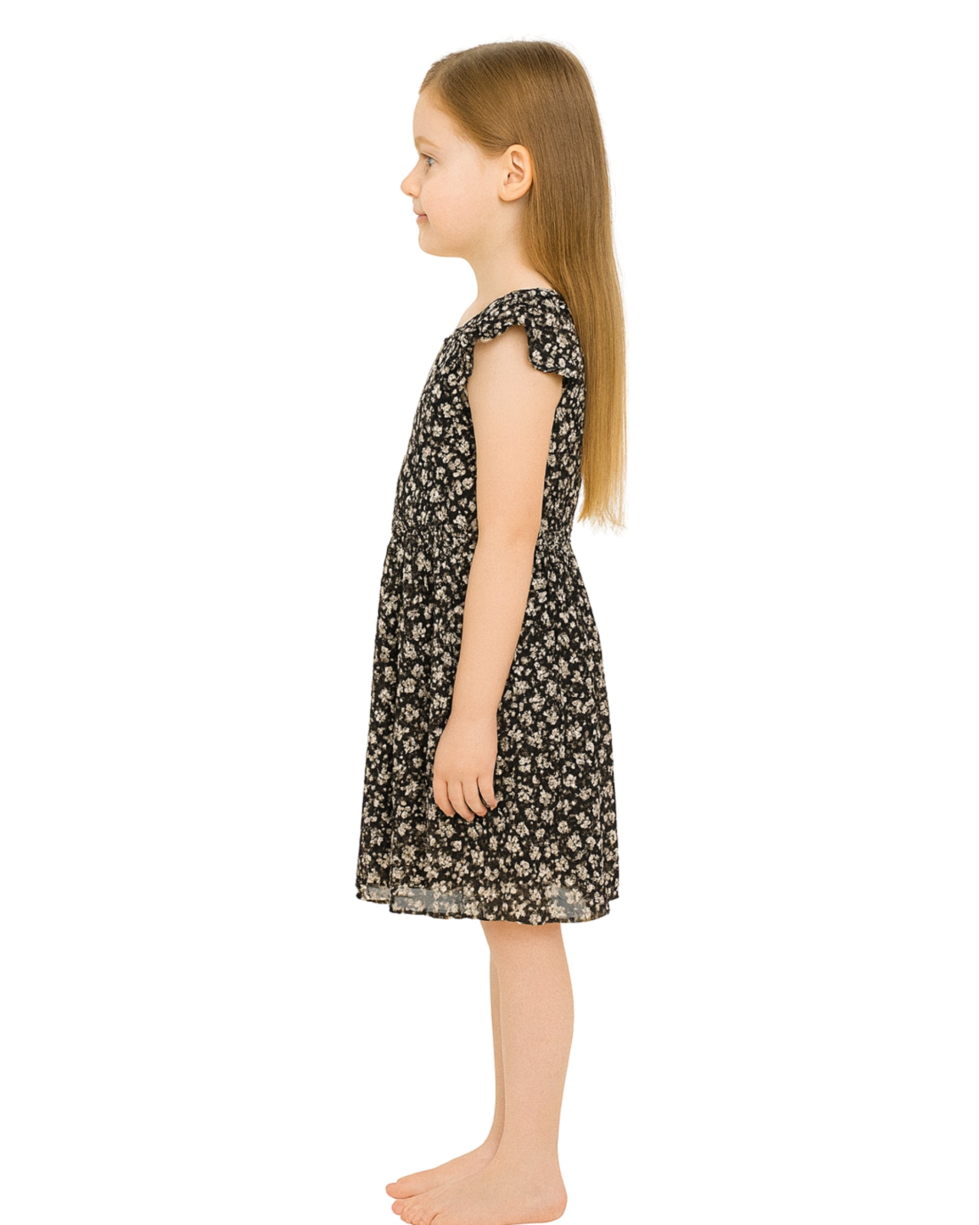 Sleeveless, Ruffle, Floral, Back Button Closure, Midi Dress