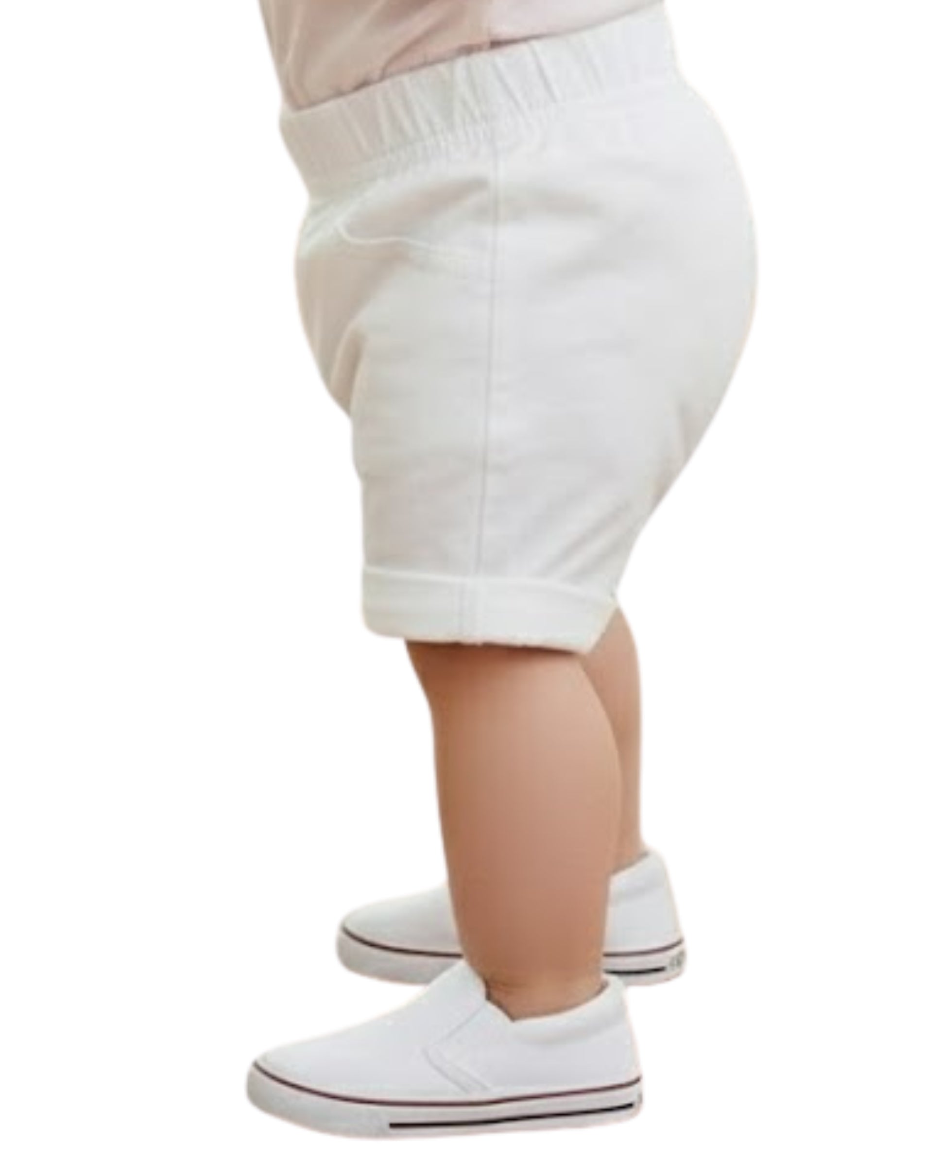 Elastic Waistband, Two Faux Pockets At Front, Two Pockets At Back Cuffed Hem