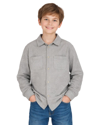 Boys, Long Sleeve, Collar Neck, Button Closure, 2 Chest Pockets, Inner Fleece, Cozy & Warm, Casual, 60% Cotton, 40% Polyester