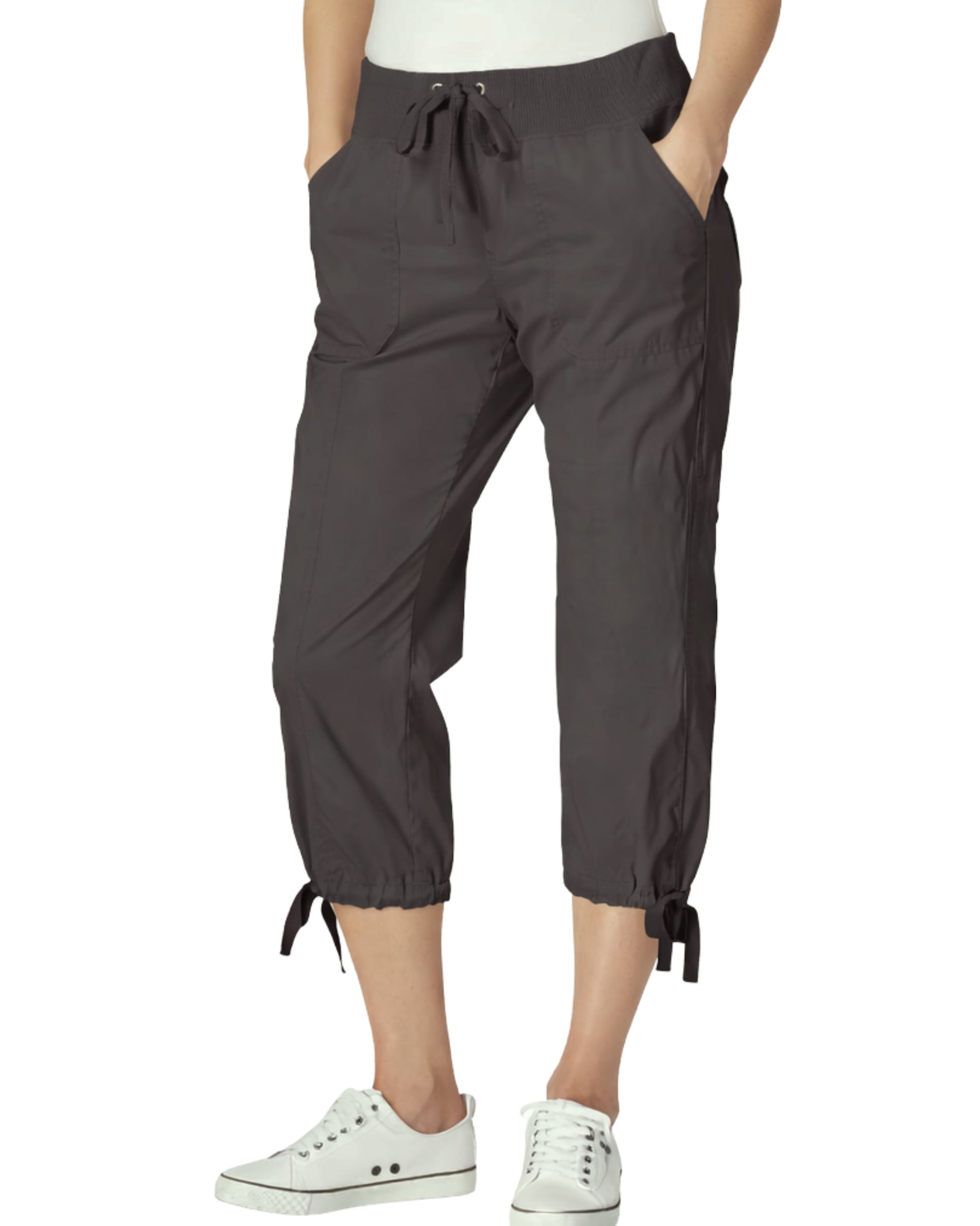 Women, Pull On, Elastic Waistband, Drawstring, Stretch, 4 Pockets, Adjustable Ankle Tie, Cropped Capri, 100% Cotton