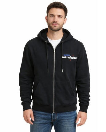 Men, Long Sleeve, Hooded, Drawstring, Full Zipper Closure, 2 Pockets, ChestDiesel Introjection Pattern, Side Sleeve Logo, Side Sleeve XS &NOS Graphic, Ribbed Cuffs & Hem, Casual, 60% Cotton, 40% Polyester