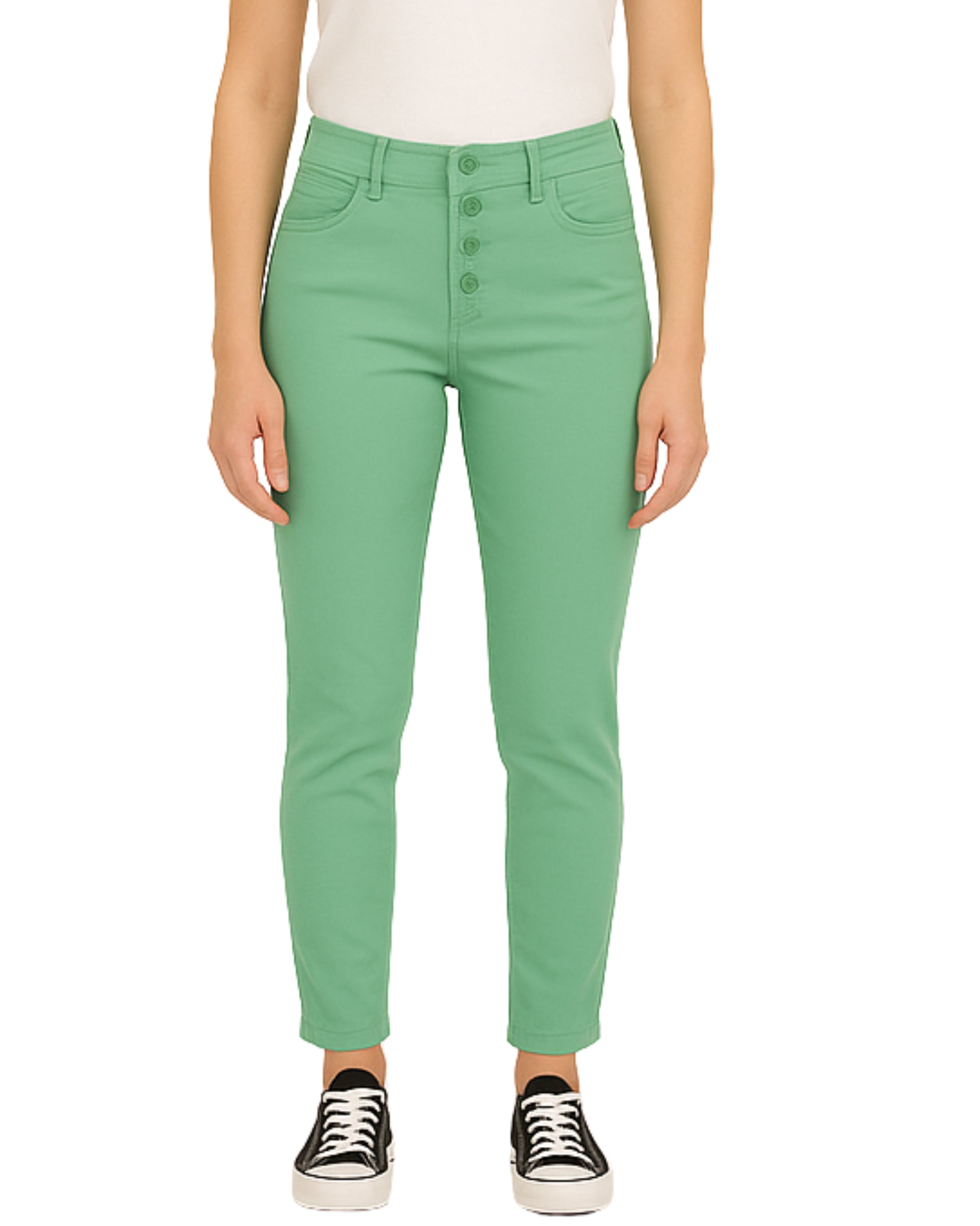 Women, Button With Zipper Closure, 5 Pockets, Cropped Slim, 98% Cotton, 2% Elastane