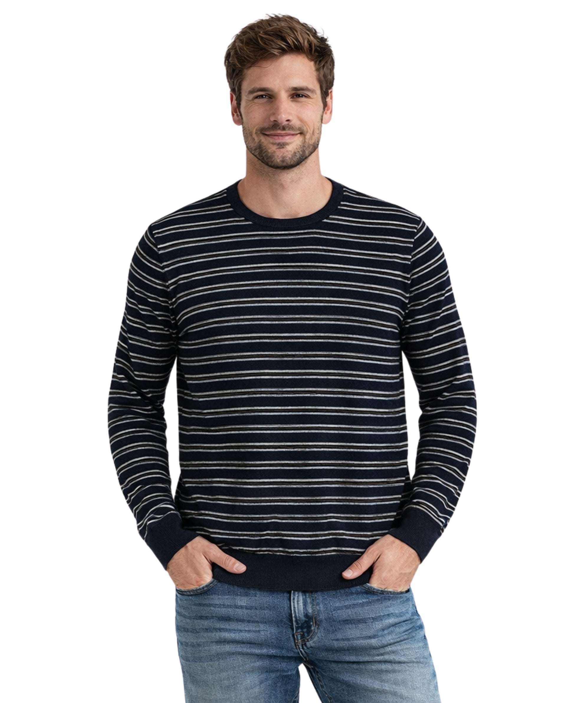 Men, Long Sleeve, Round Neck, Stripe, Soft, Casual, High Quality Knitwear, 100% Cotton