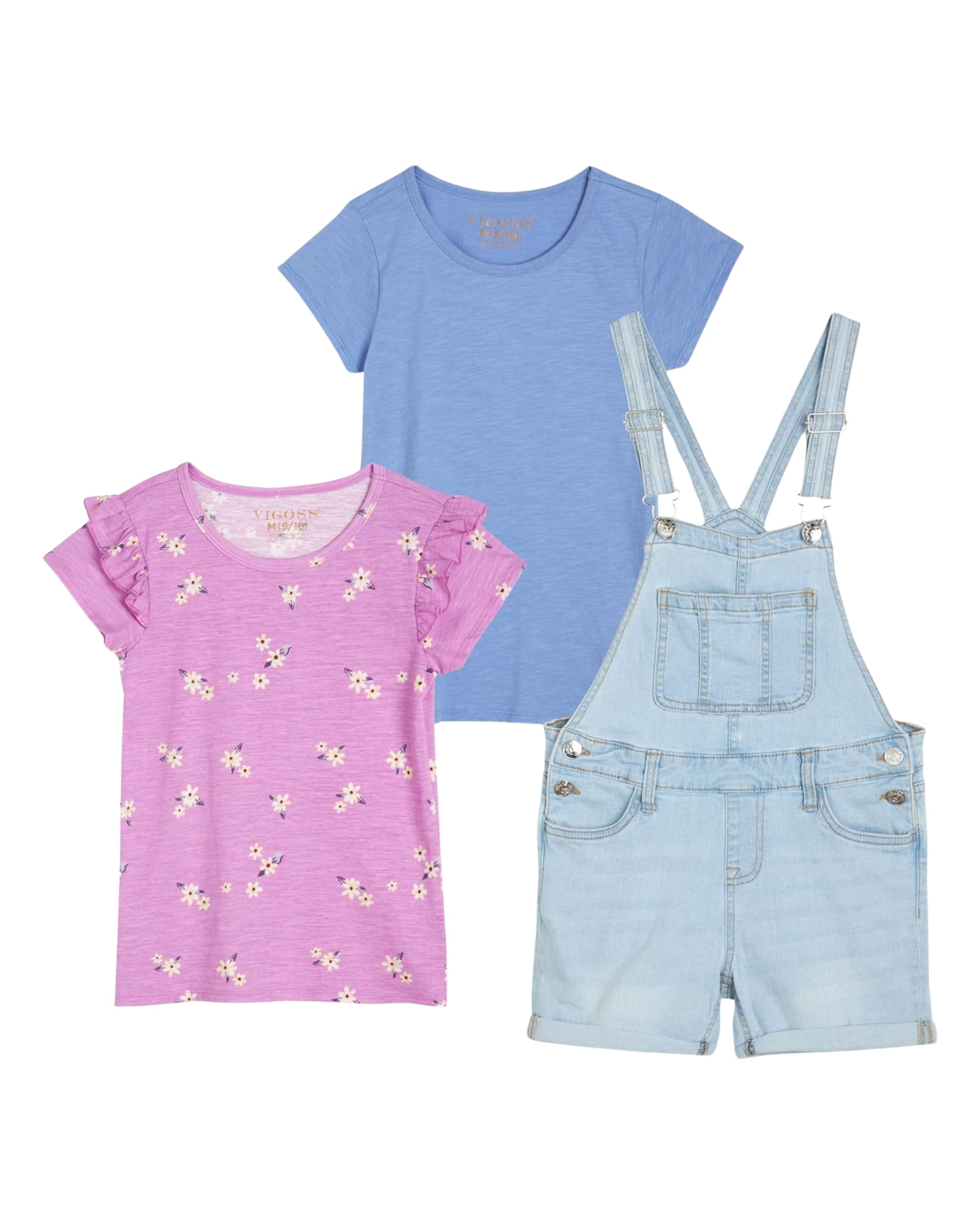 VIGOSS Girls Denim Shortall Set 3 Pcs