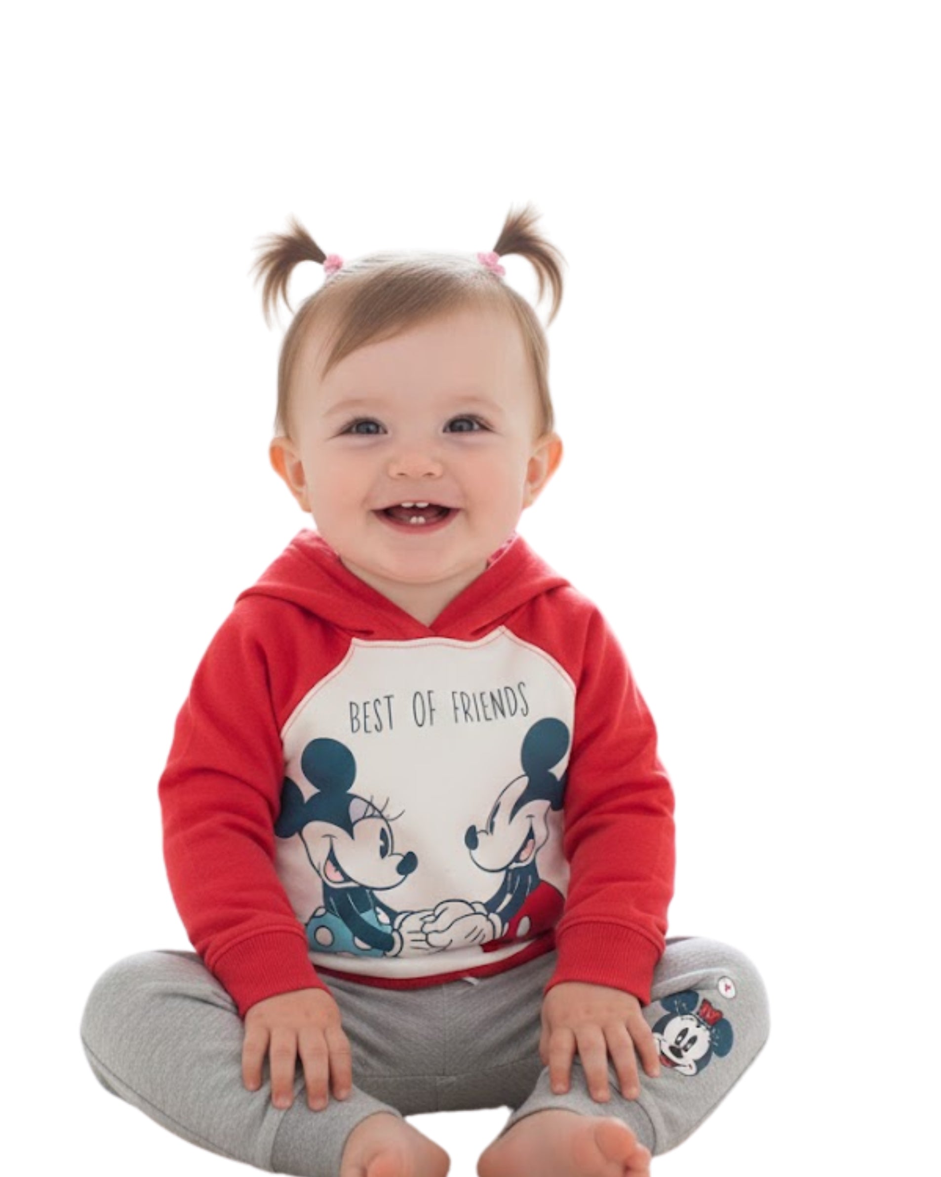 Baby Girls, Long Sleeve, Hooded, Soft, Stretch Pants, Minnie Mickey Graphics, Casual, 60% Cotton, 40% Polyester