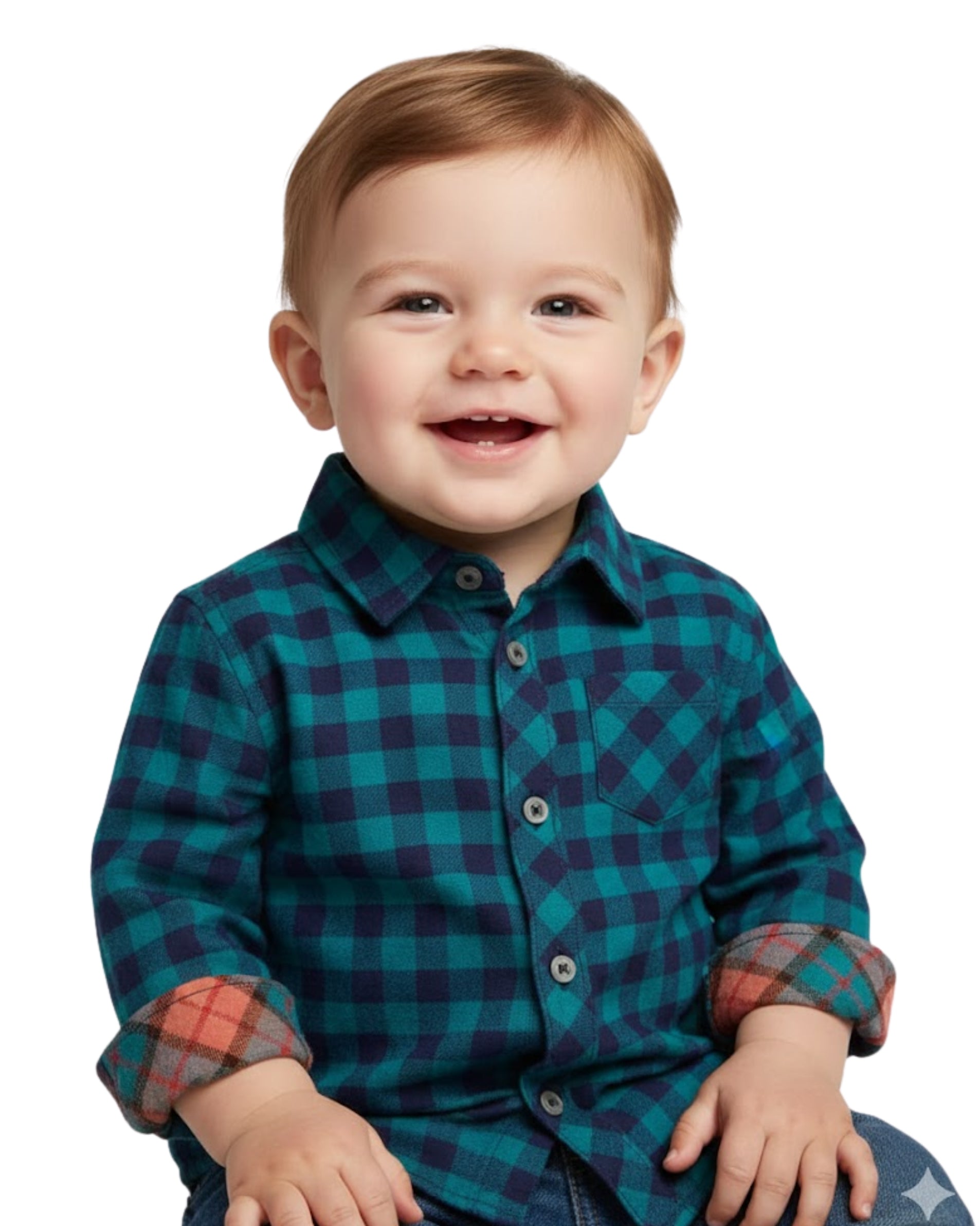Baby Boys, Long Sleeve, Polo Neck, Button Closure, Stripe, Patch Pocket, Casual, 100% Cotton