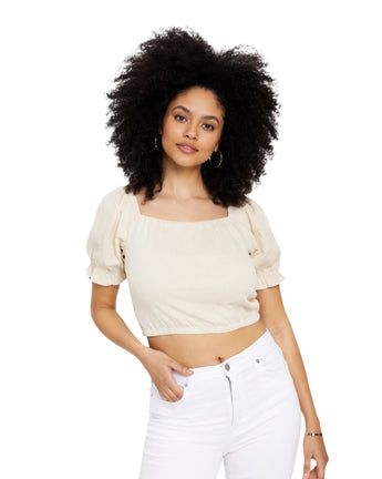 Women, Short Sleeve, Square Neck, Crop, 99% Polyester, 1% Spandex