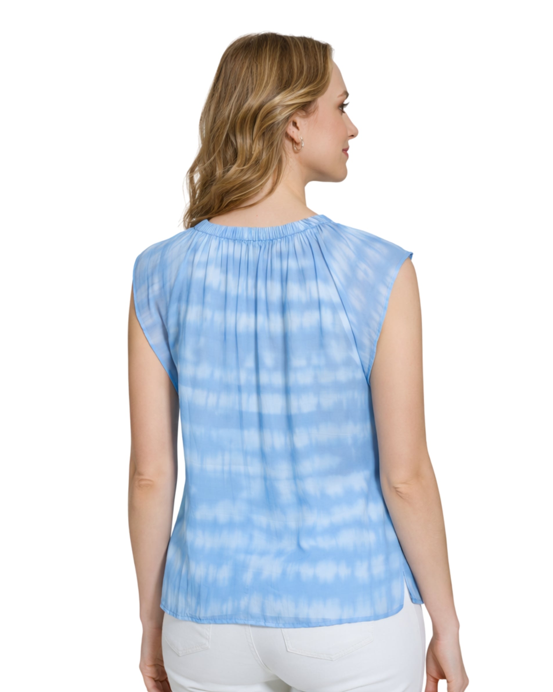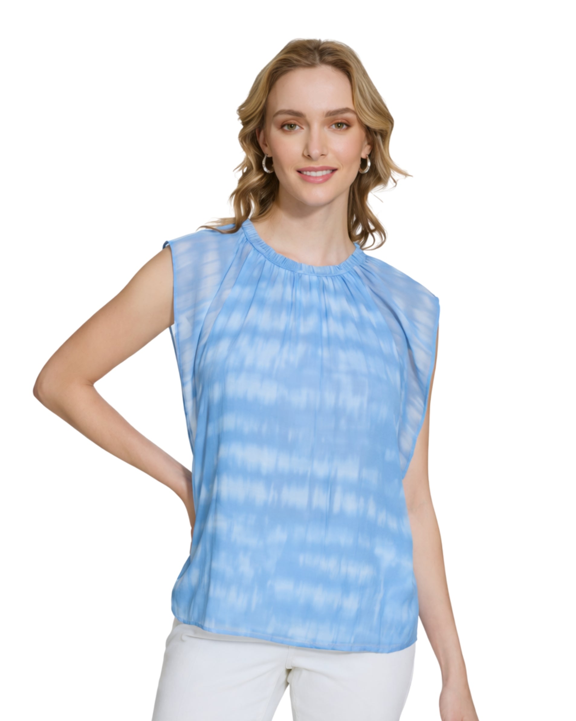 Women, Design, Comfort, Printed, Sleeveless, Ruffle Neck, 70% Polyester