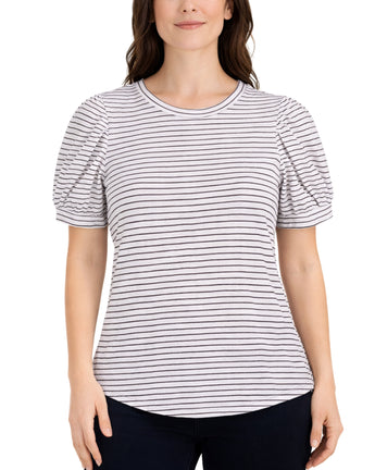 Short Sleeve, Crew Neck, Striped, Casual, 97% Cotton, 3% Spandex