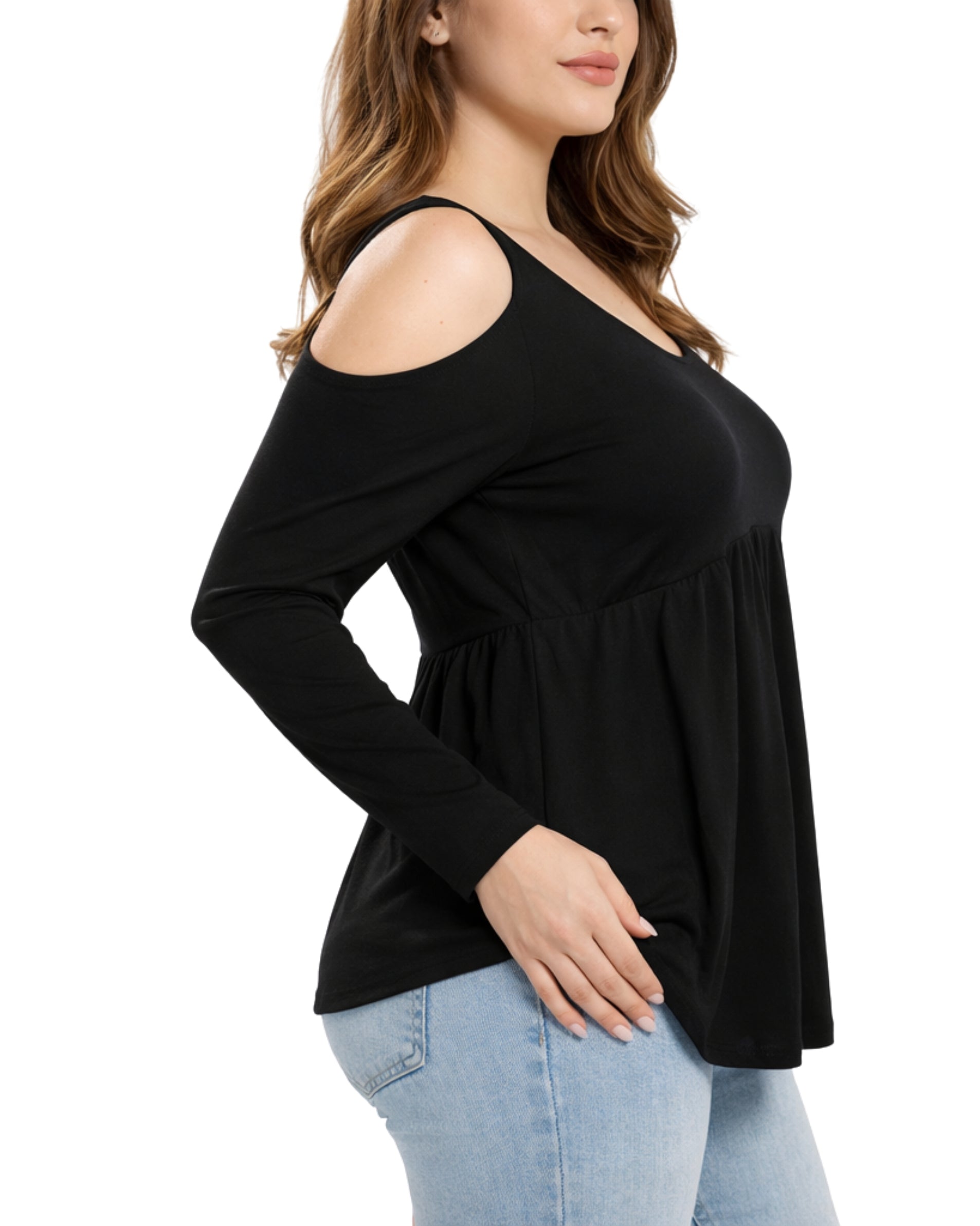 Off Shoulder, Long Sleeve, Round Neck, Open Back
