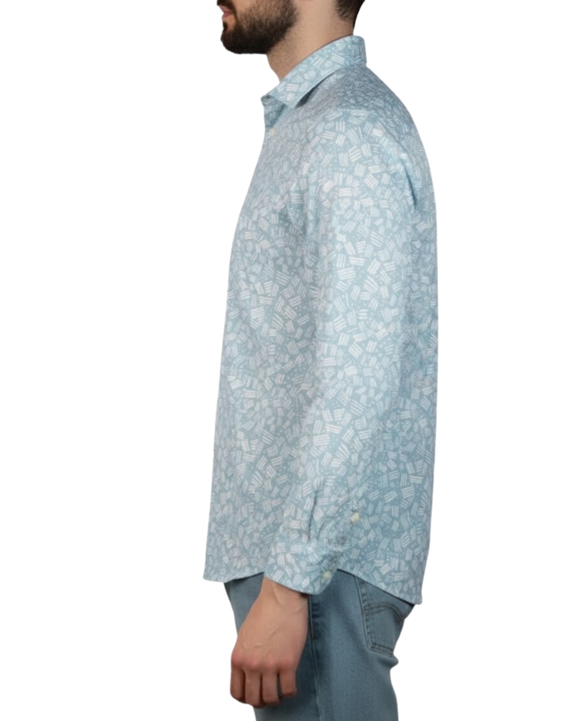 Men, Long Sleeve, Collar Neck, Button Closure, Soft, Slim Fit, Stretch, Graphic, Casual, 96% Polyester, 4% Elastane