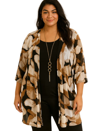 Women, open-front cardigan, relaxed fit with a draped silhouette, Casual, Soft, Breathable, 3/4 Sleeves, Set 2 pcs Cardigan Included Tank Top