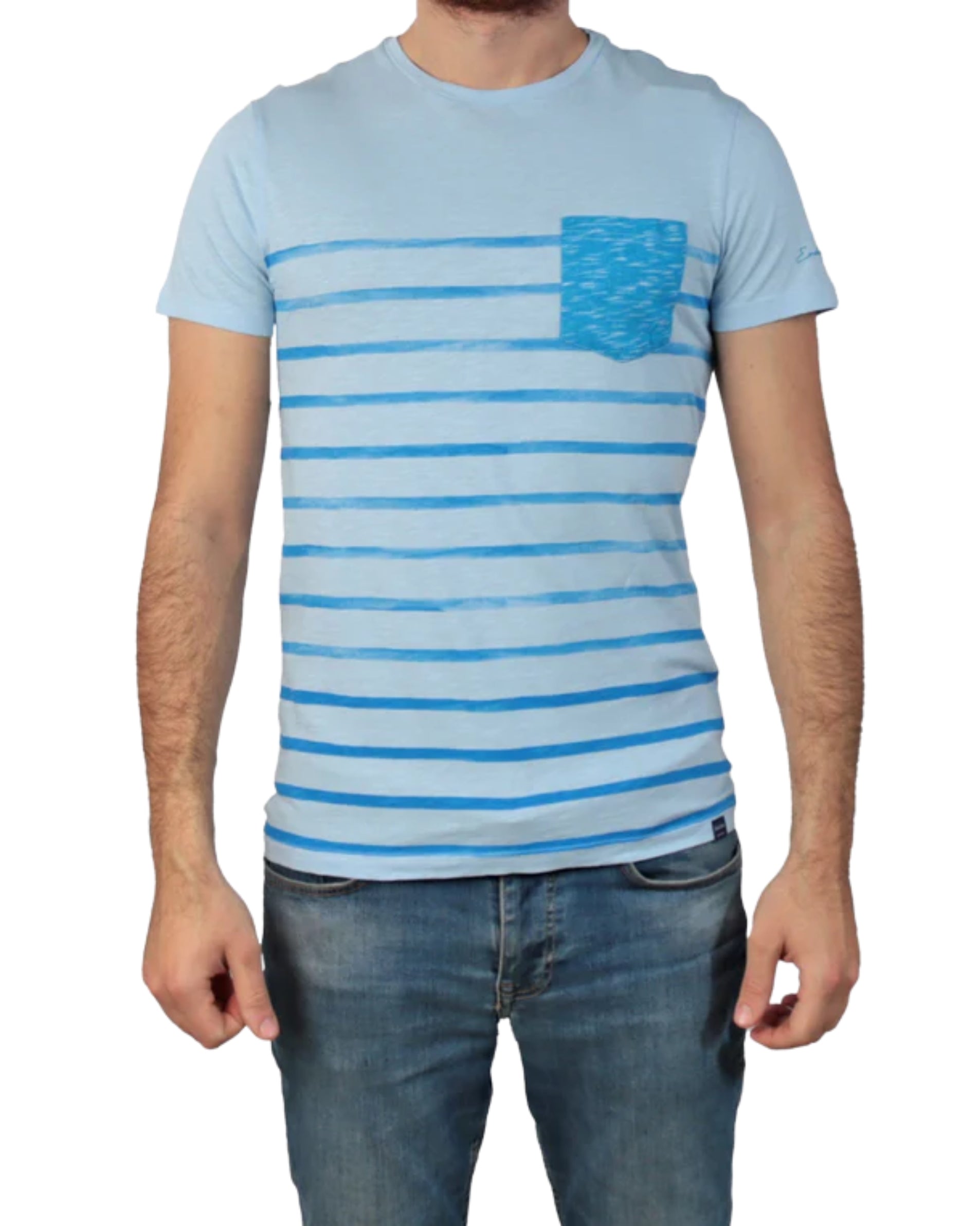 Men, Stripe, Crew Neck, Short Sleeve, Comfort, Pocket, 100% Cotton