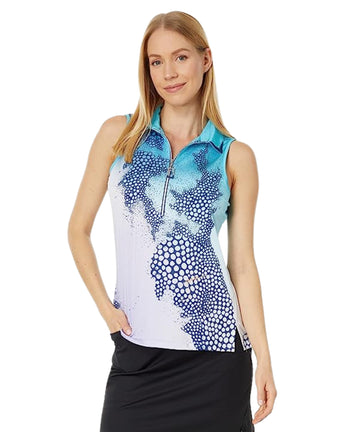 Women, Polo Neck, Zipper Closure, Graphics, Sleeveless, Logo Sign, Stretch, 92% Polyester, 8% Spandex