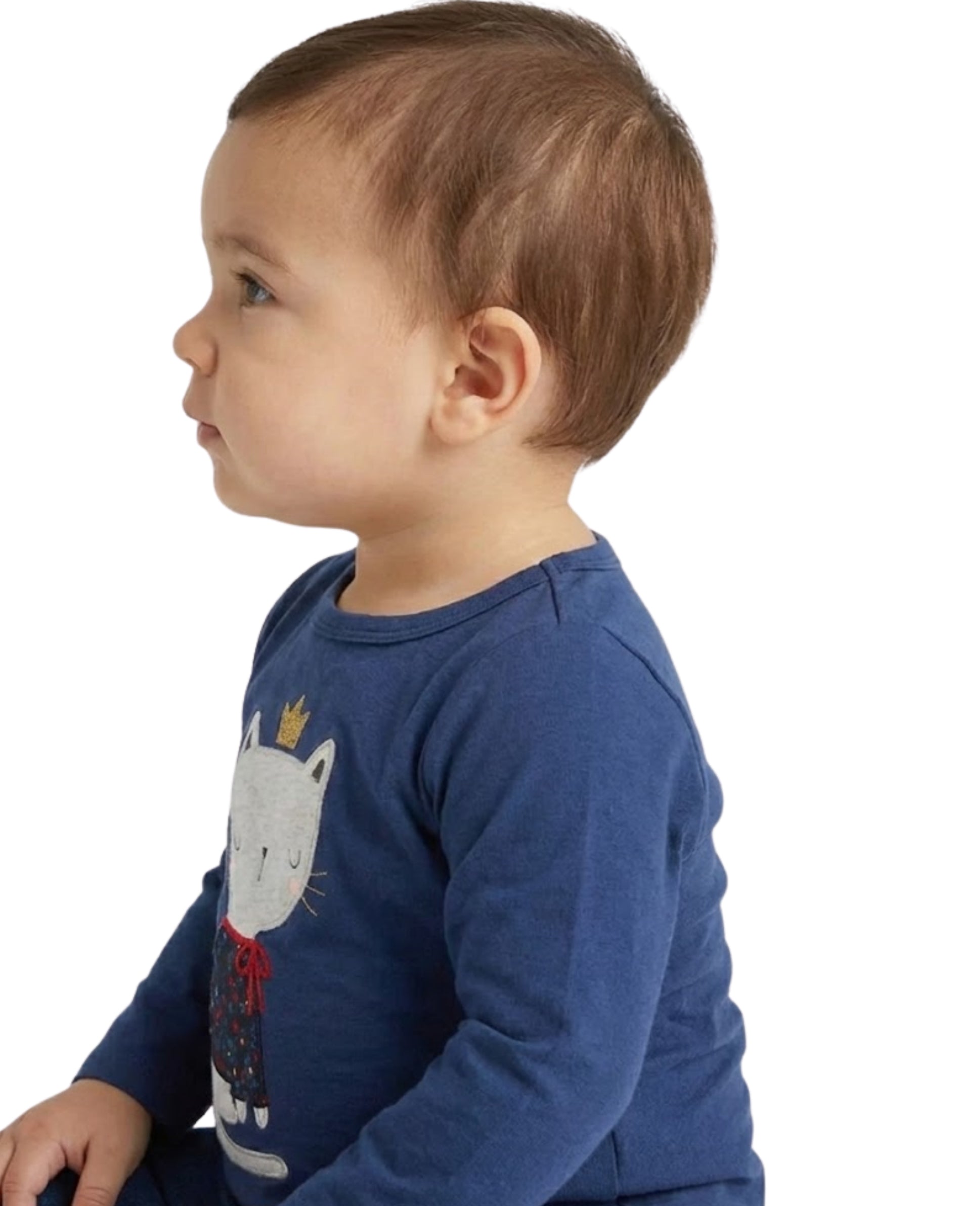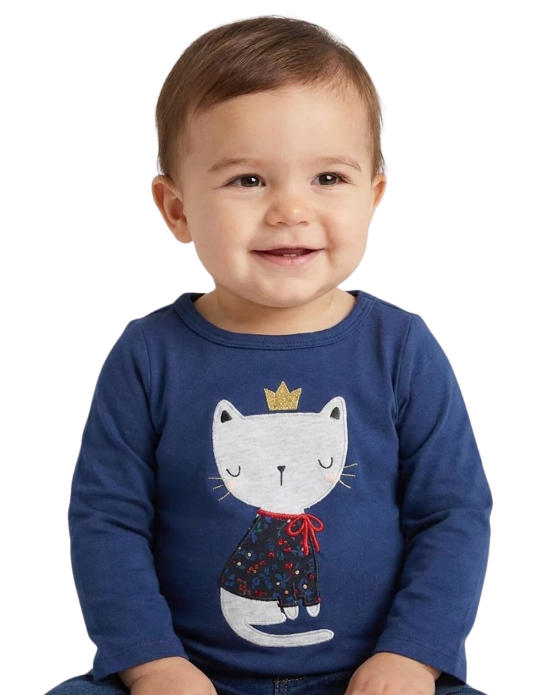 Baby Girls, Long Sleeve, Crew Neck Cozy Cat, 100% Cotton