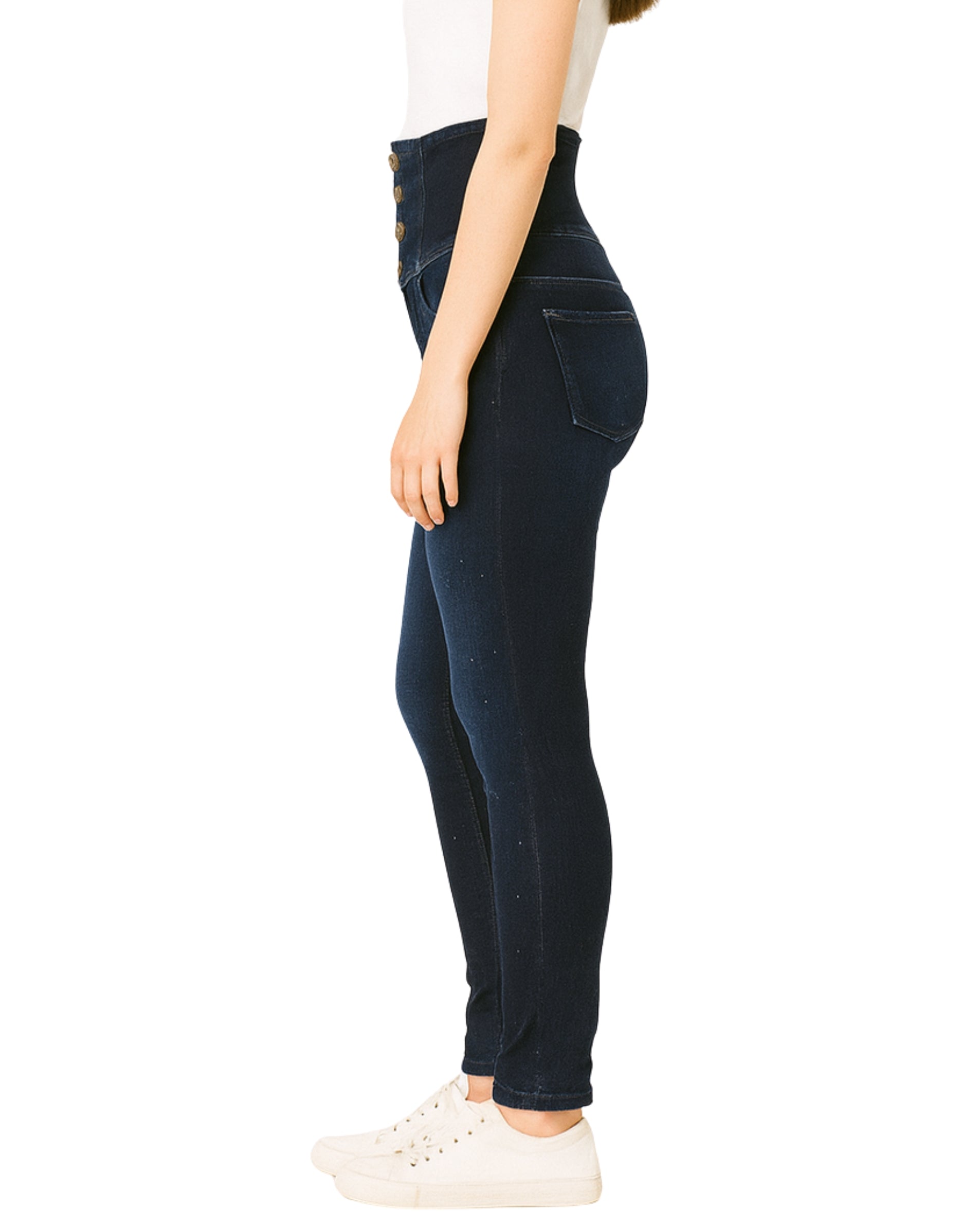 High Waist, Stretch, Button With Zipper Closure, Back Zipper, 5 Pockets, Strauss, 17% Cotton, 17% Elastomul Tiester, 2% Elastane