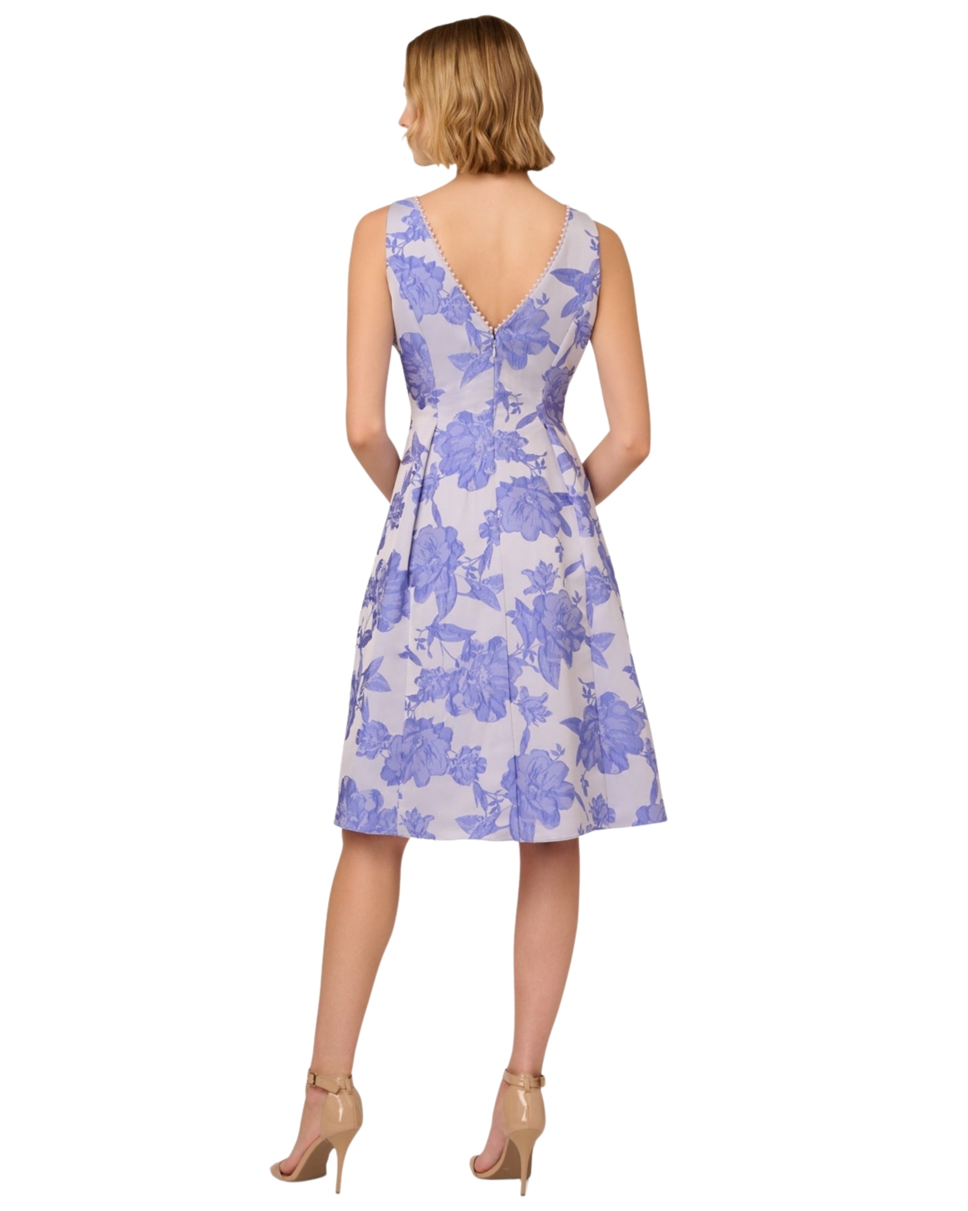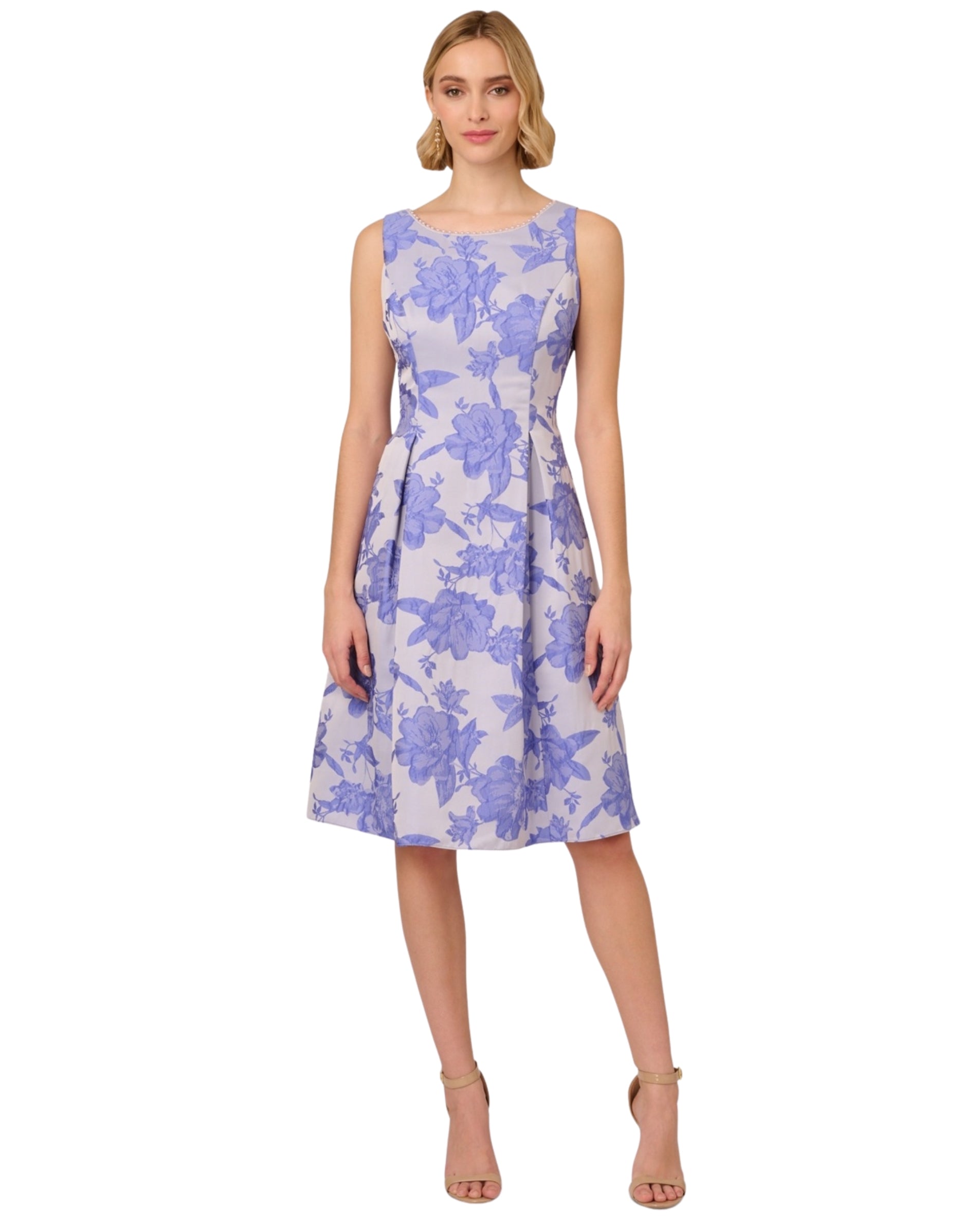 Women, Dress, Floral, Short Dress, Pearl Trim on The Front and Back of The Neck and a Pleated Detail on The Skirt, Zippered back closure, Above the knee length, 100% polyester