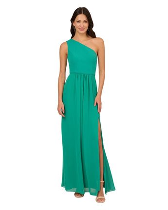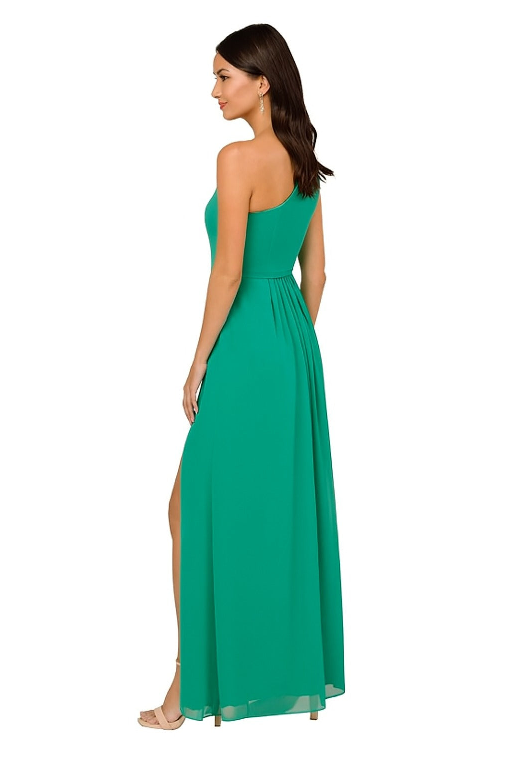 Women, Dress, Chiffon One-Shoulder, Front Side Slit, Side Zipper Closure, Long Dress, Side Open Leg, High Quality