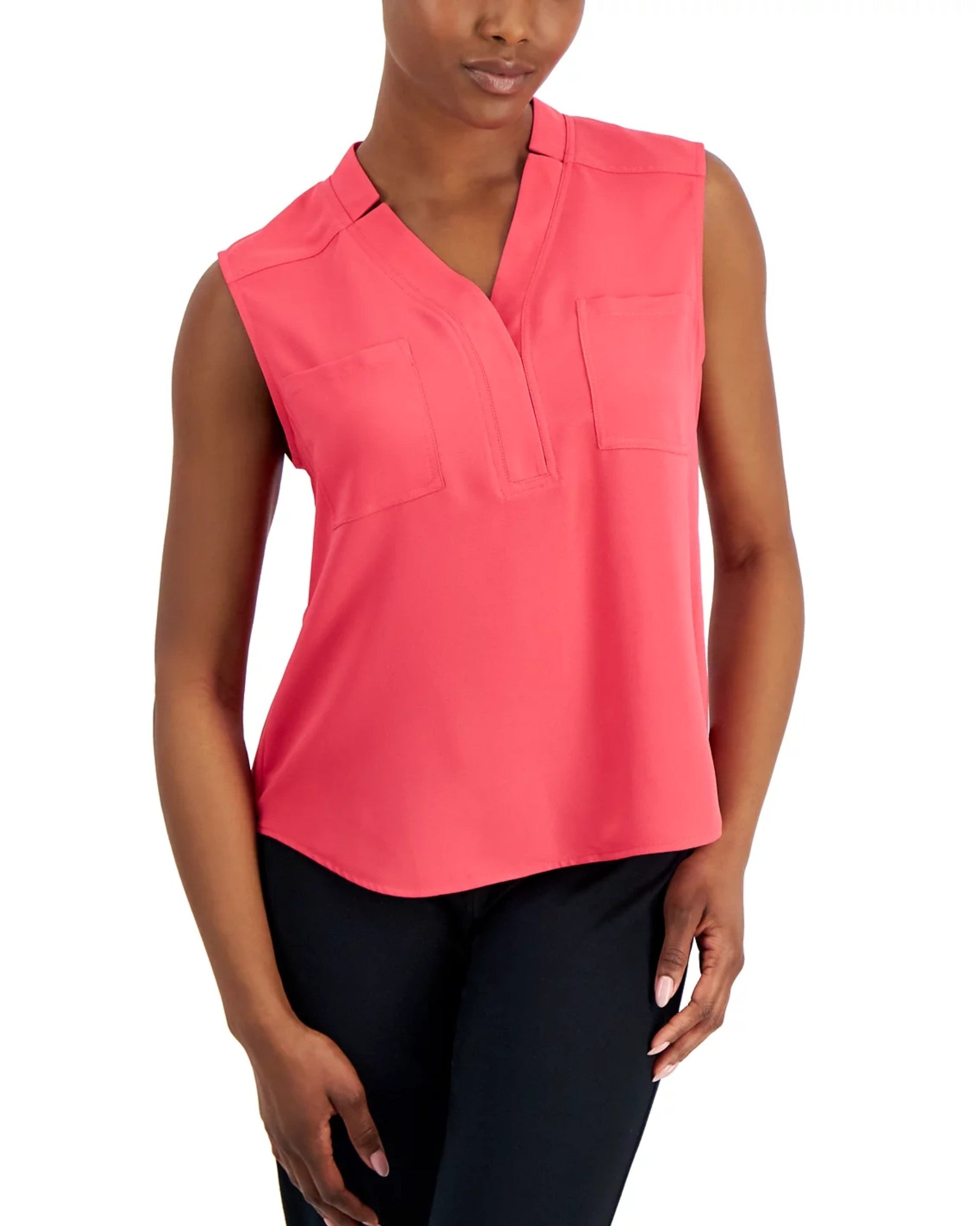 Women, Pull In, Sleeveless, V Neck, 2 Chest Pockets, Smooth, Soft, Casual & Chic, 100% Polyester