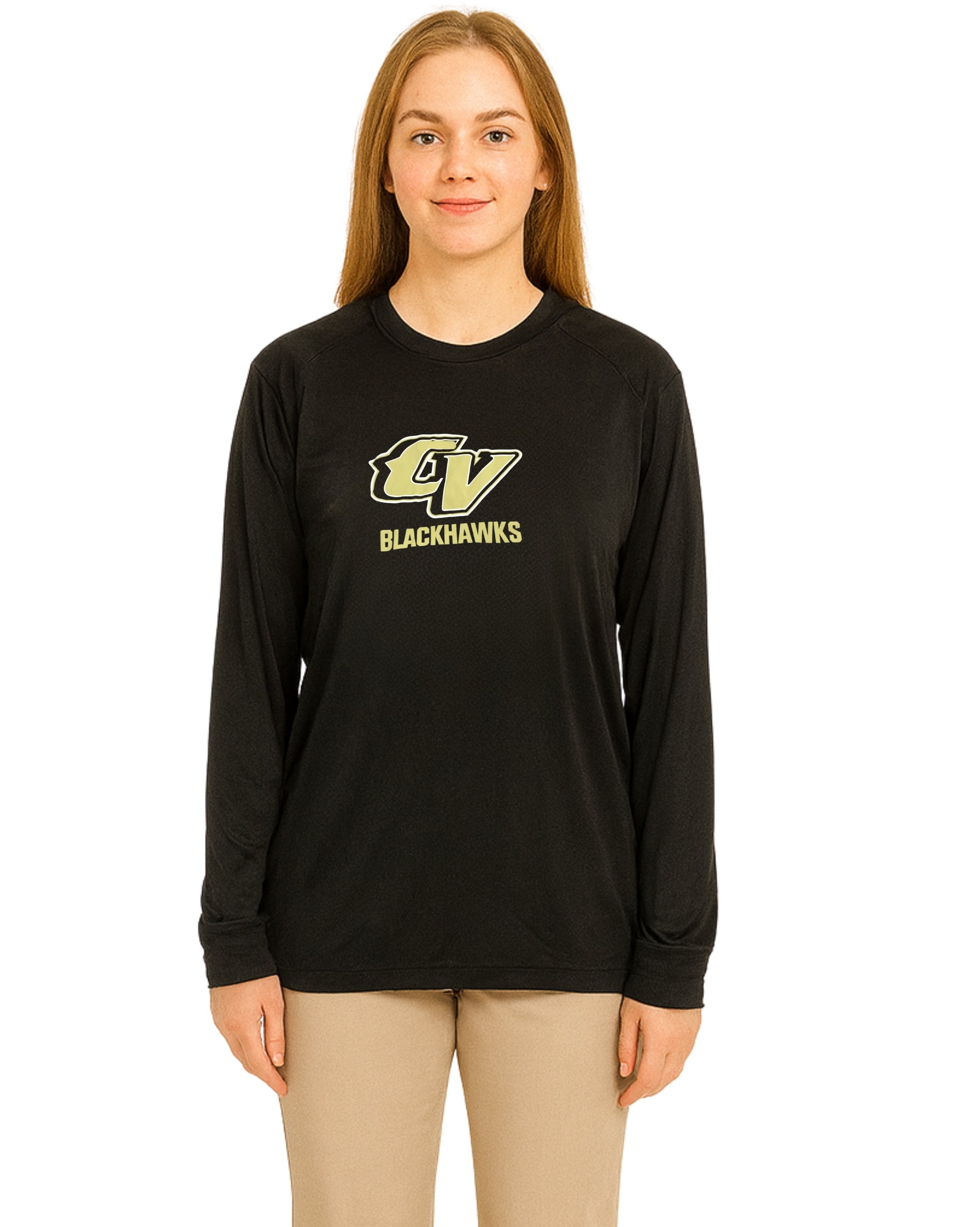 Women, Long Sleeve, Crew Neck, Front Cv Blackhawks Graphic, Soft, Basic, 100% Polyester