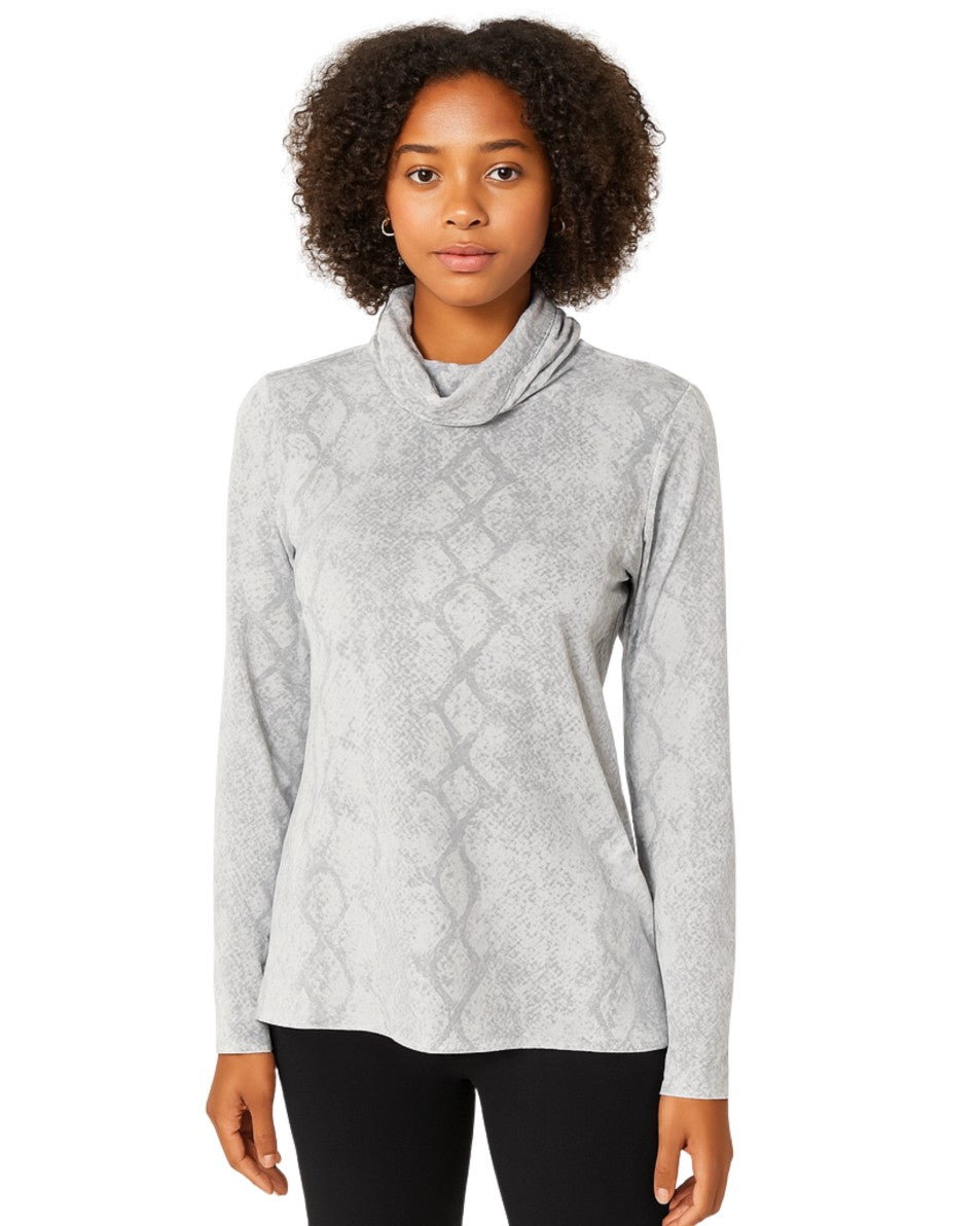 Women, Long Sleeve, Cowl Neck, Snake Pattern, Soft, Comfort, Casual, 97% Polyester, 3% Elastane