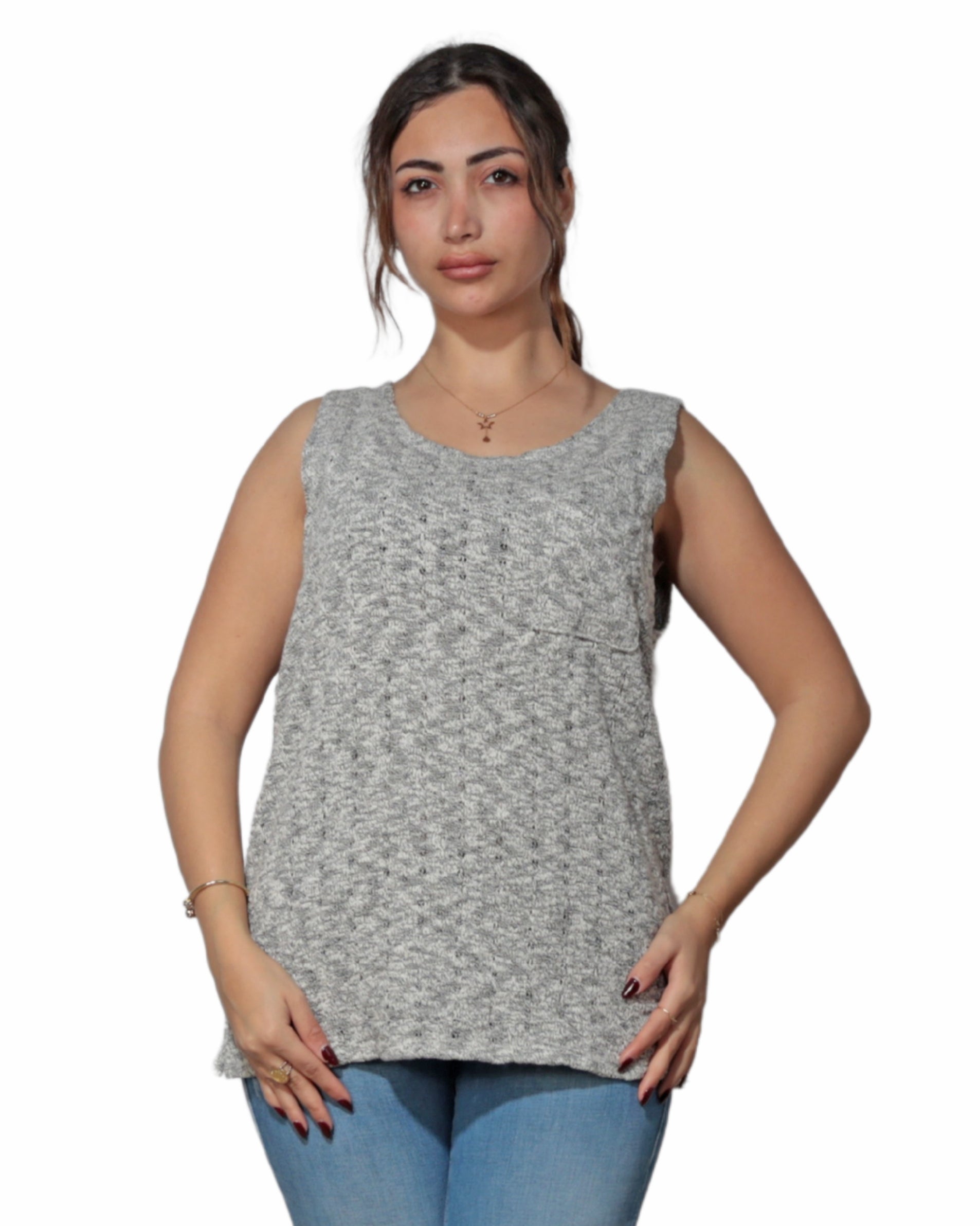 Women, Sleeveless, Round Neck, 1 Patch Pocket, Soft, Cozy, Stylish, 78% Cotton, 19% Polyester, 3% Spandex