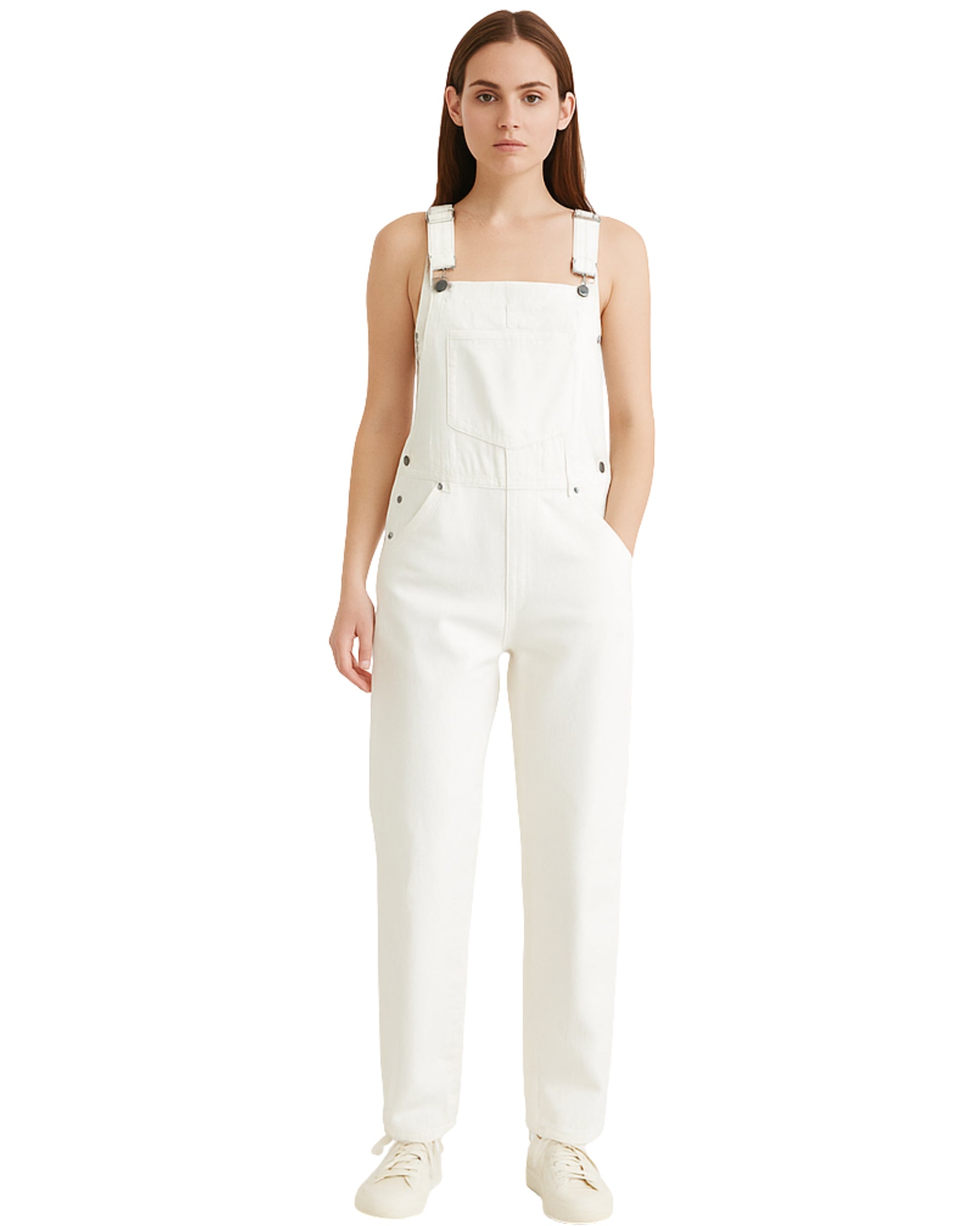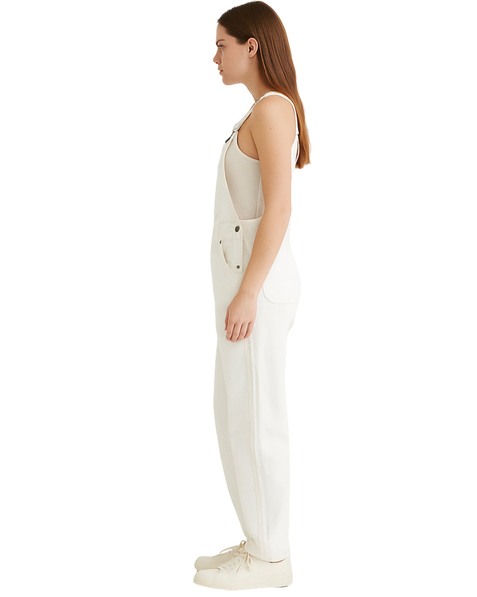 Sleeveless, Adjustable Strap, Split Neck, 5 Pockets, One Front Pocket, Side Waist Button Closure, Casual, 100% Cotton